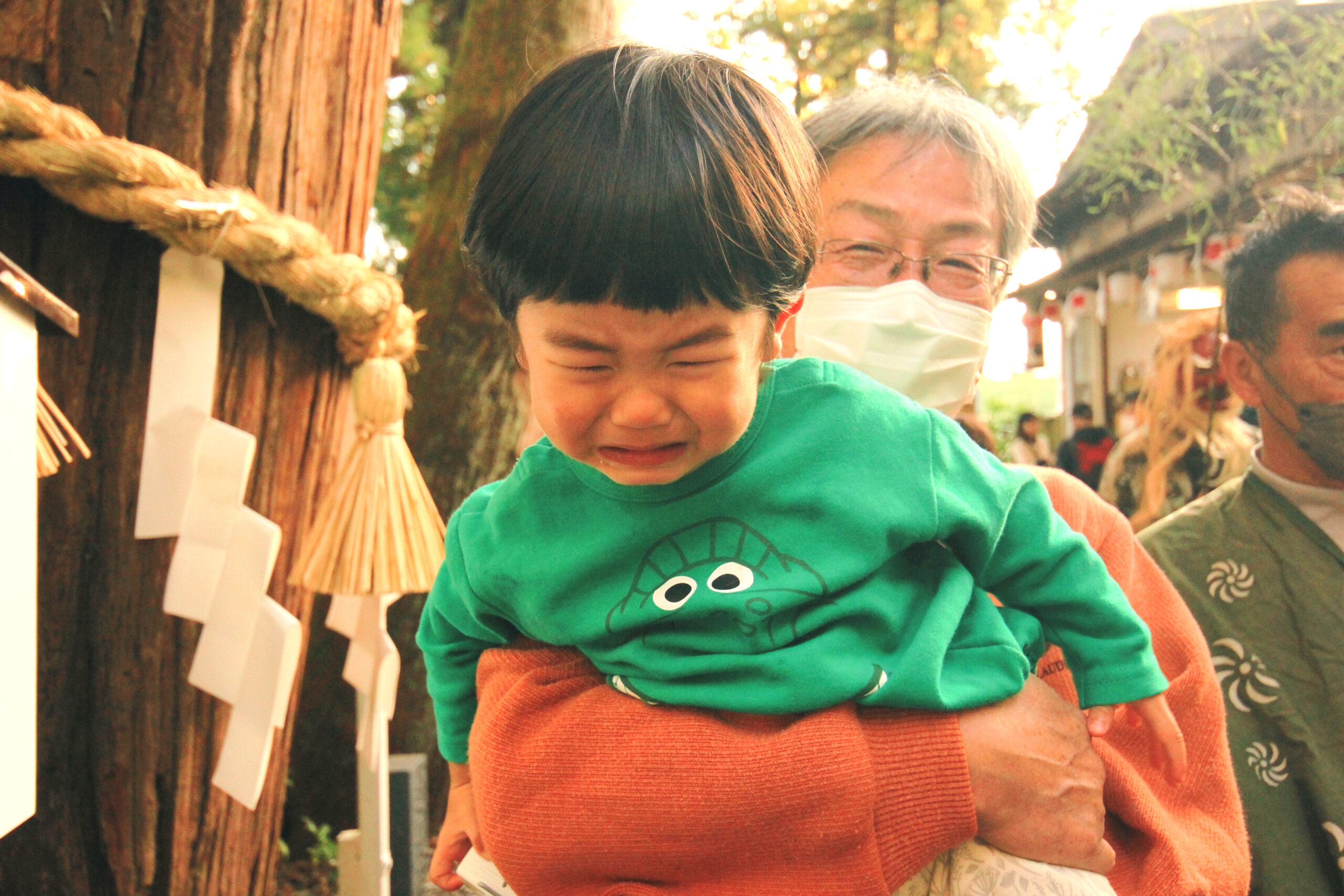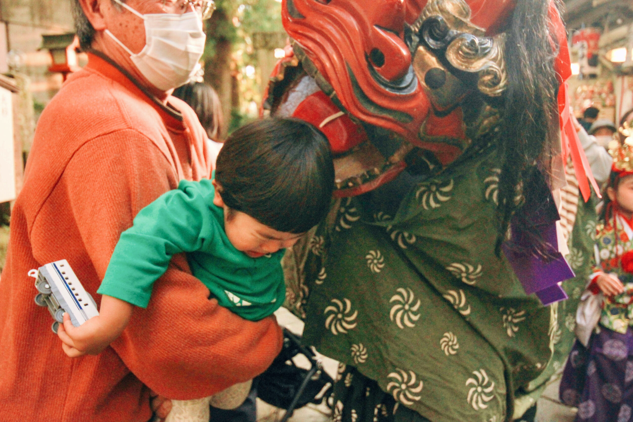 最後は、初獅子舞に無事、大泣きしたわが息子。
