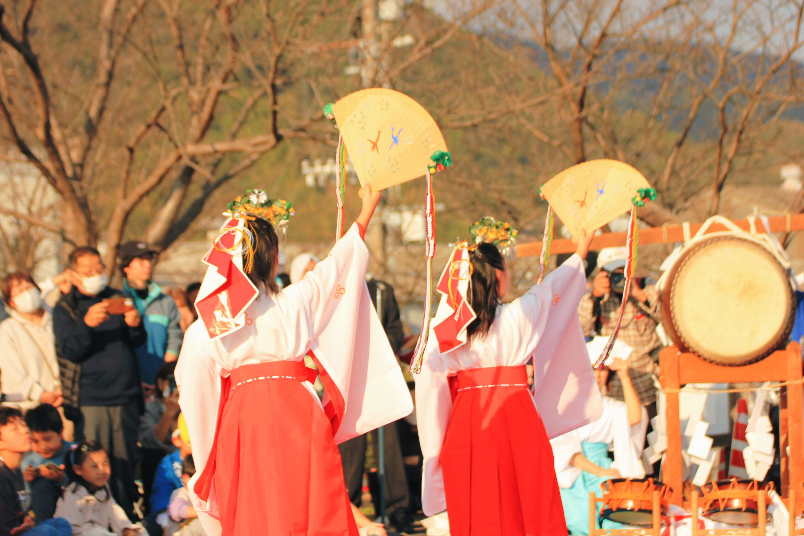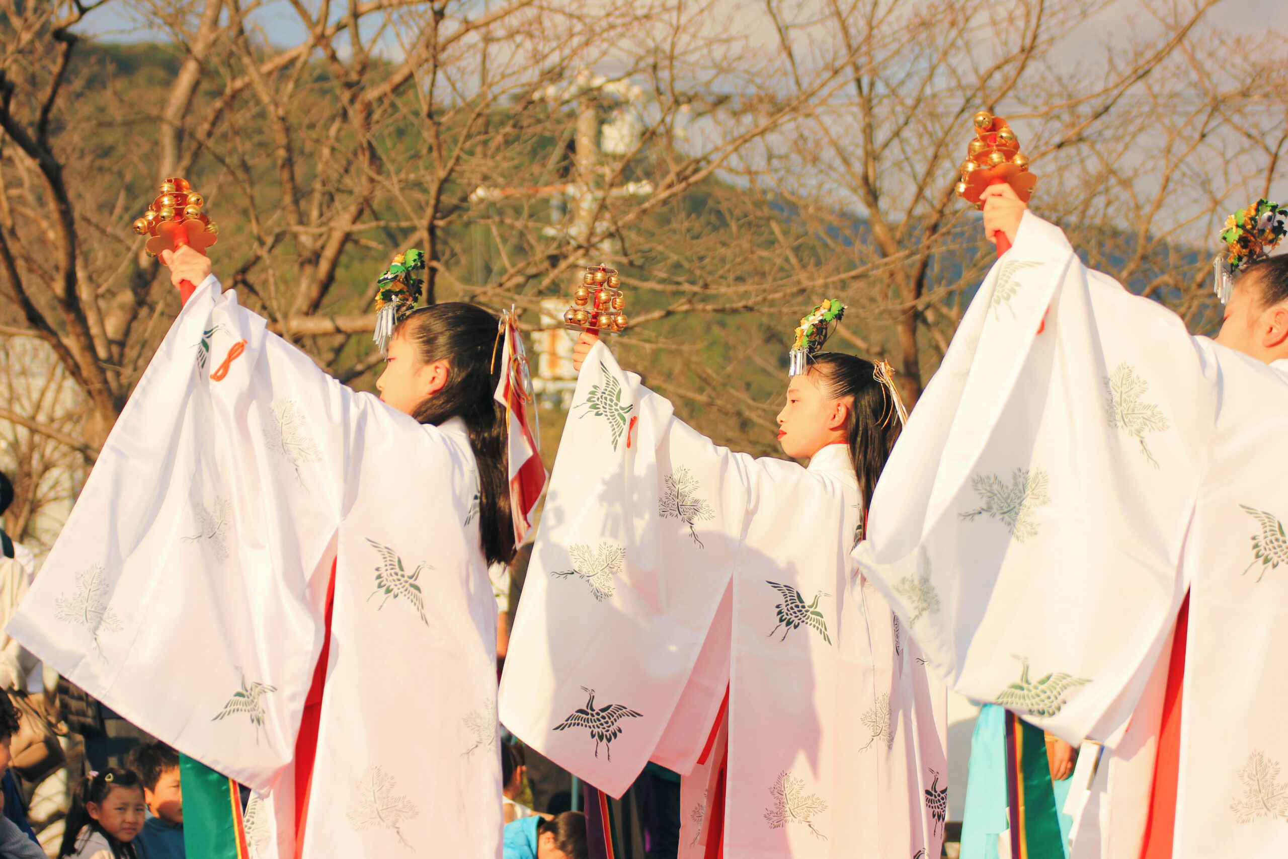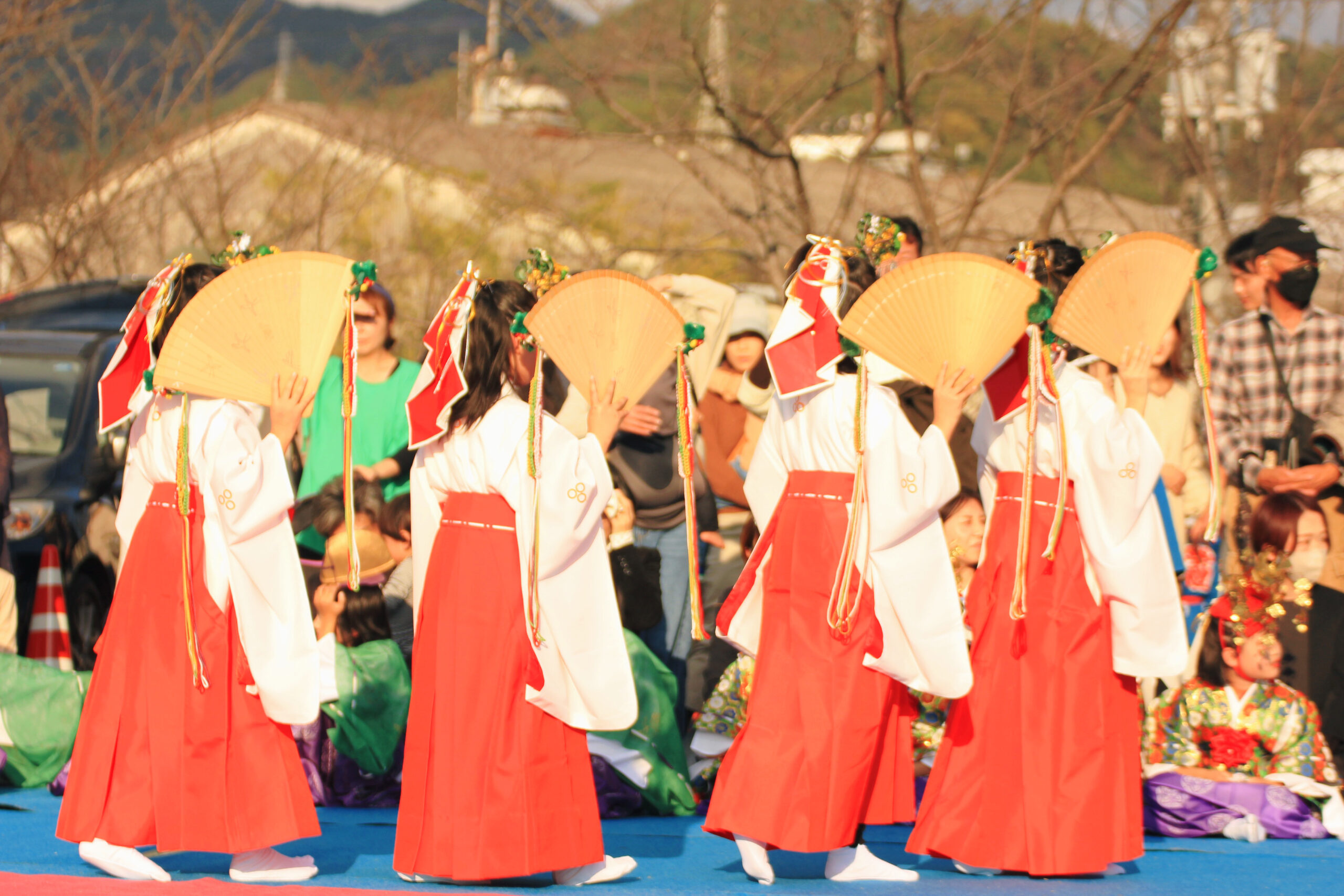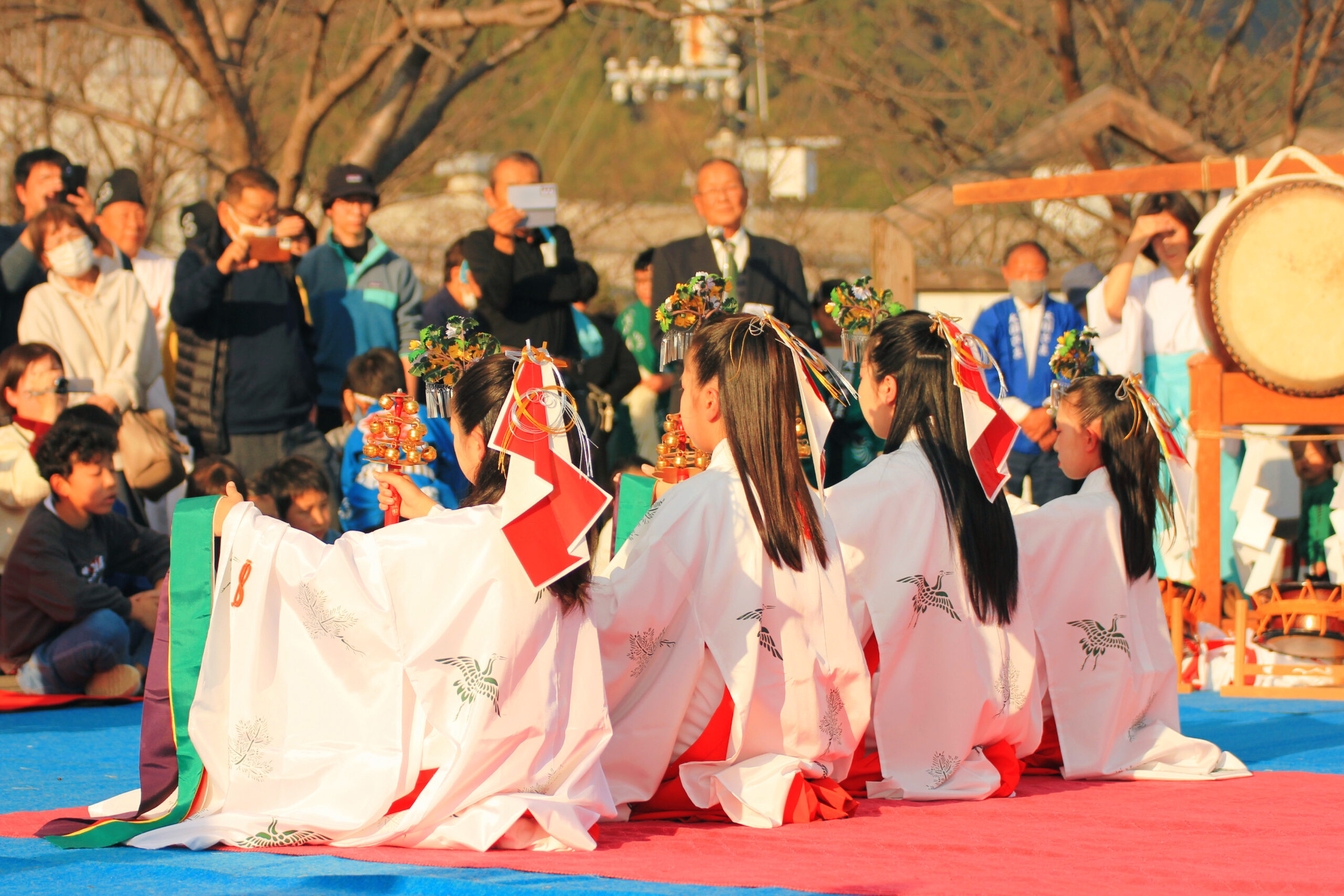 そして、お姉さんたちによる浦安の舞です。こちらは扇と鈴バージョンがありました。