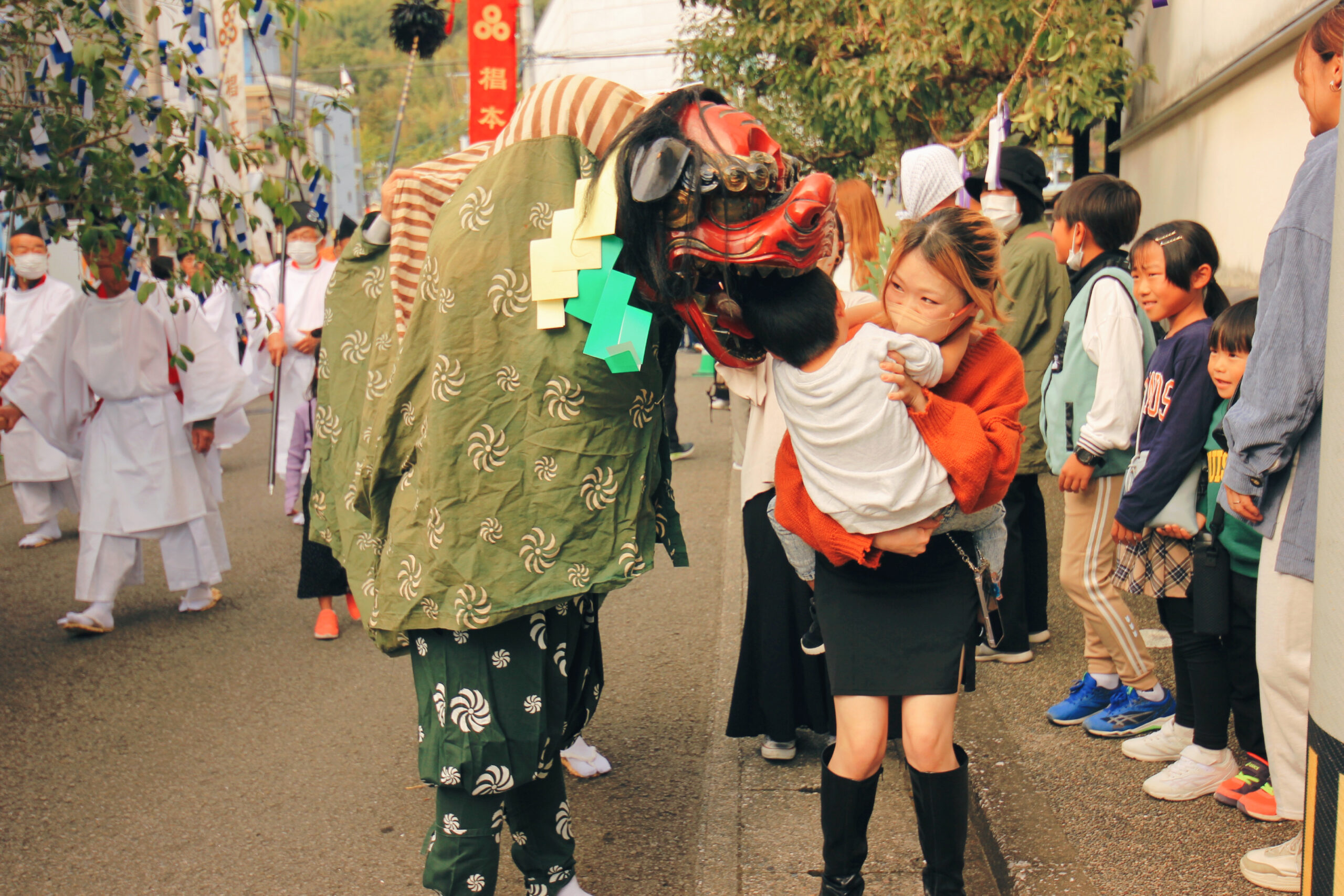 そうか…!この楽しさとデジャブは…ドリフ!?さっきまで獅子に怯えていた子どもたちは、ゲラゲラと笑い、大人たちもつられて大笑いしています。