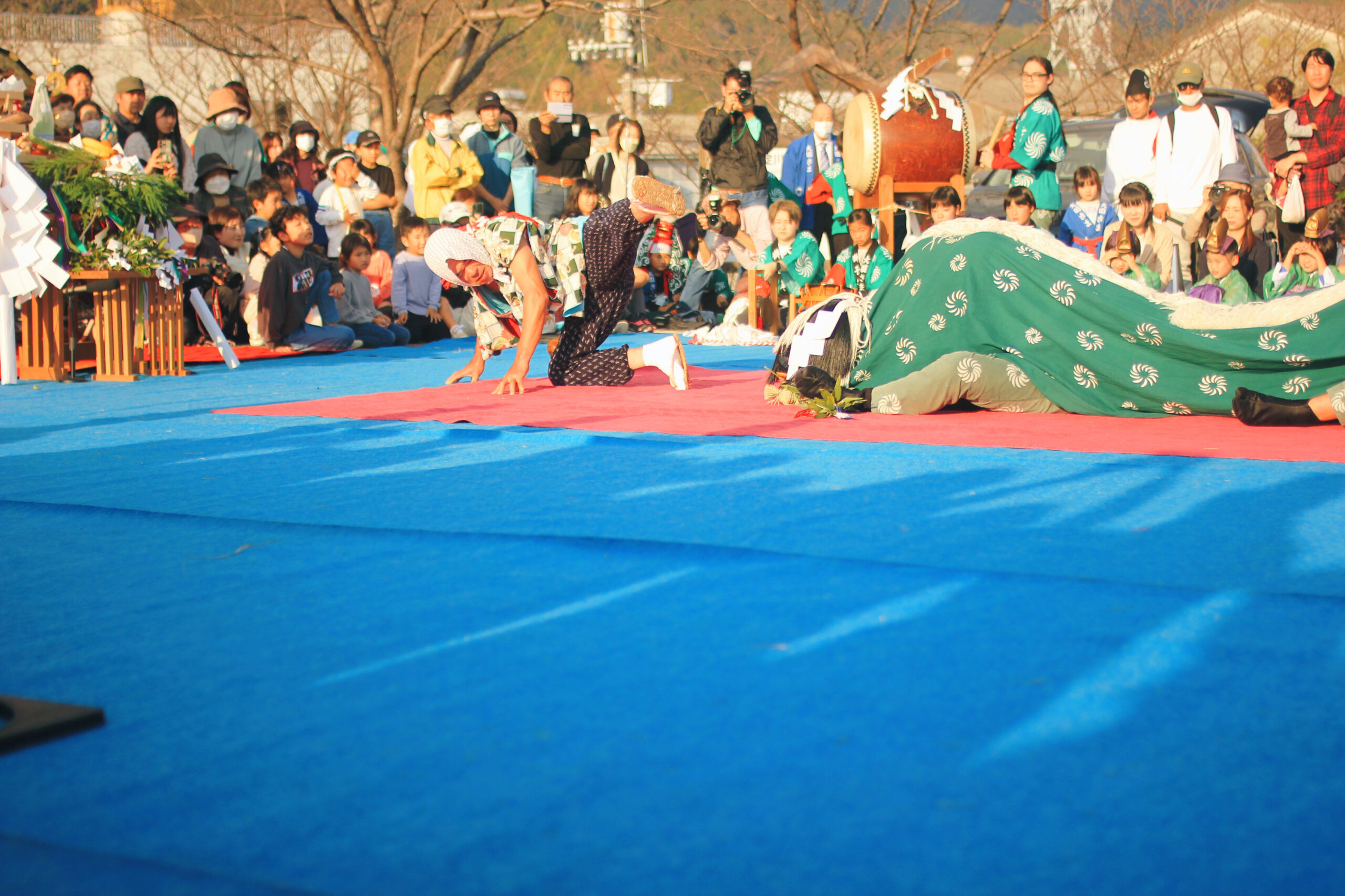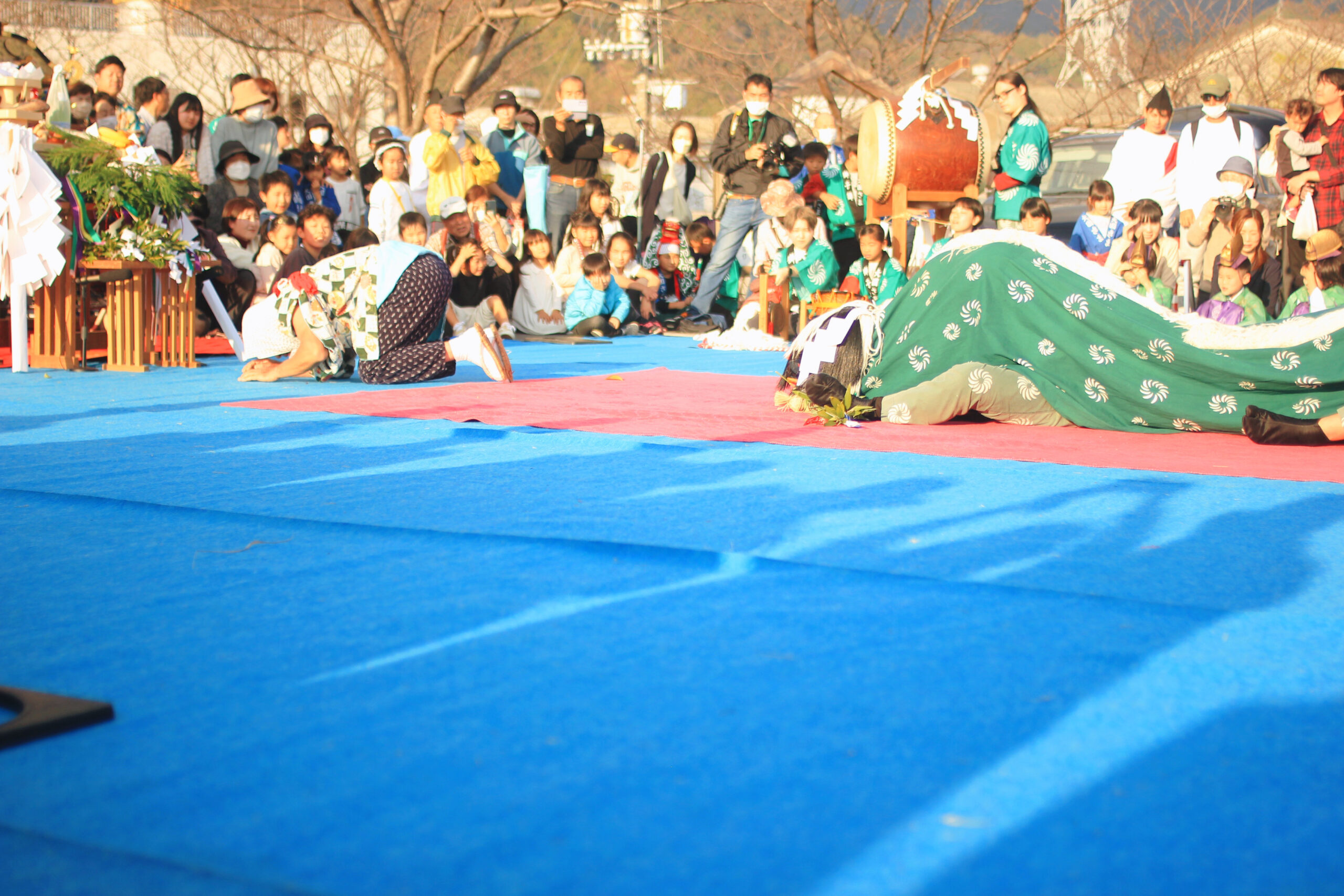 杉本さん:春は2月3日に行われ、大国祭といいます。大国舞や獅子舞が奉納されますが「おなばれ」はありません。基本的には、みなさんにご参拝していただくので、秋大祭とはまた違った雰囲気のお祭りになっています。