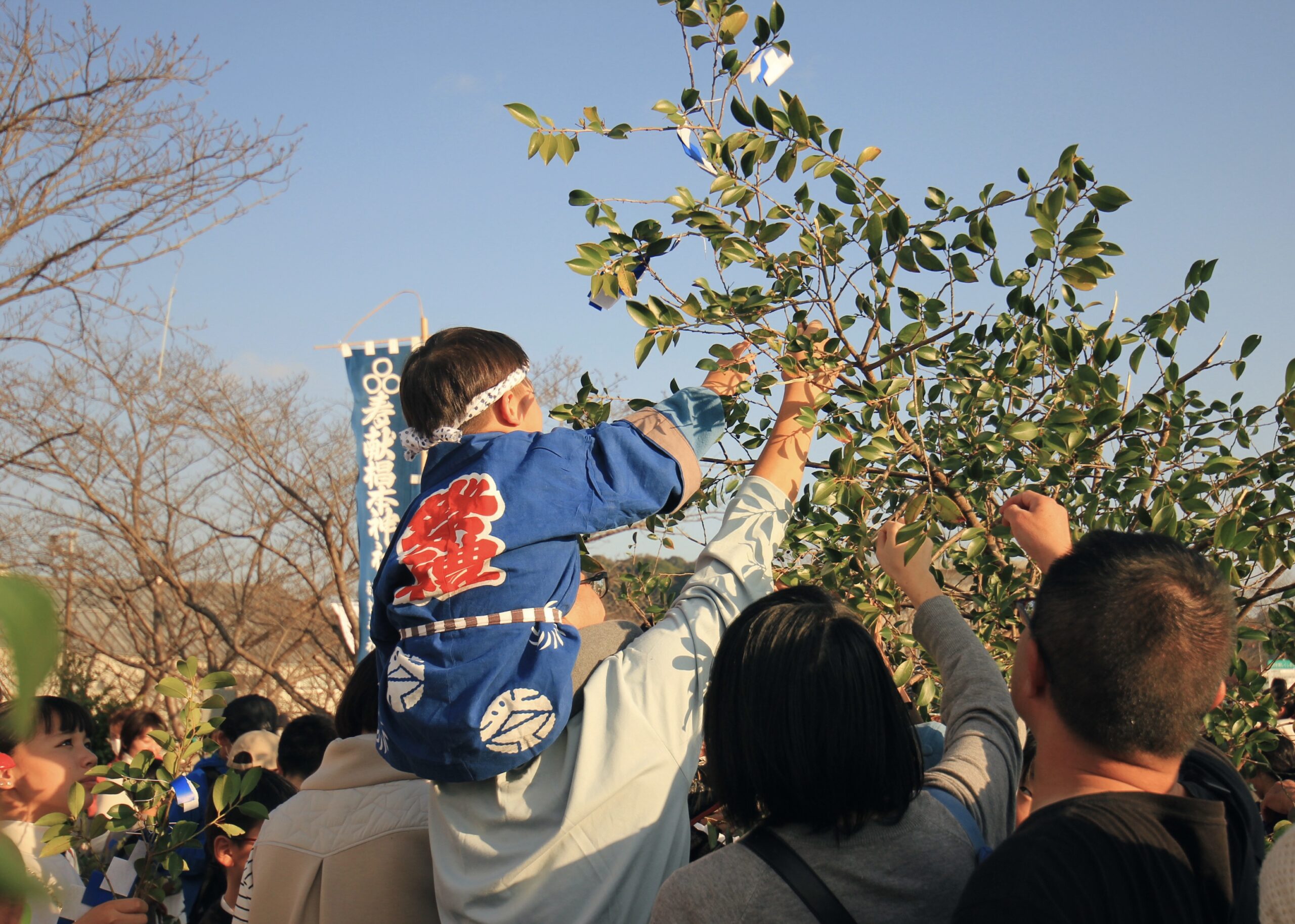 その後は、地元のおばあちゃんが、なぜかコッソリと耳打ちで教えてくれた榊(さかき)合戦なるものがありました。老若男女関係なく「よーい、どん!」で、榊を取り合うというワイルドな合戦です。この榊には、ご利益があるそうで、持ち帰って大切にお家に飾るのだと教えていただきました。