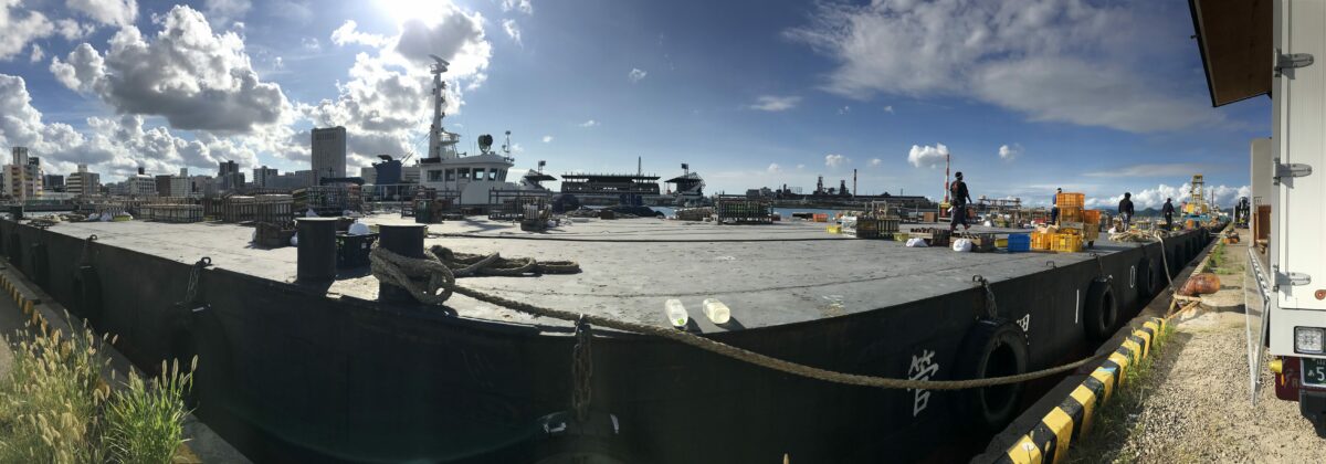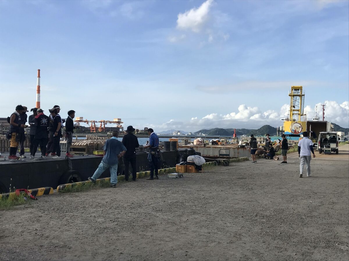 台船2艘を連結し約90mの幅を確保していました。保安距離の関係で最大4号となりますが、筒場から会場までの距離が、その分かなり近くなるので迫力は十分あると思います。