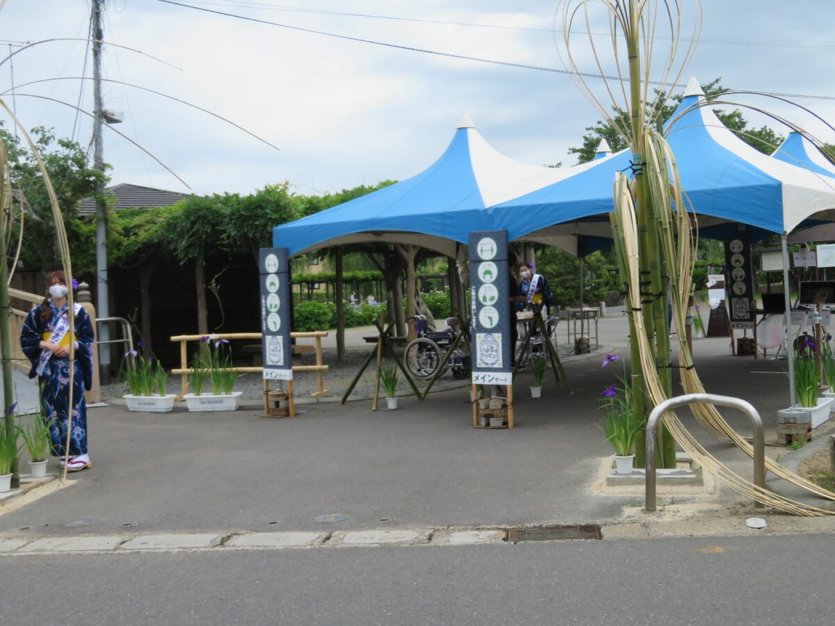 浴衣姿の女性が笑顔で出迎えてくれる「水郷潮来あやめ園」の入口