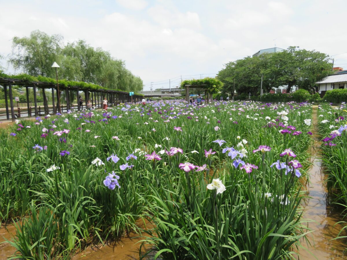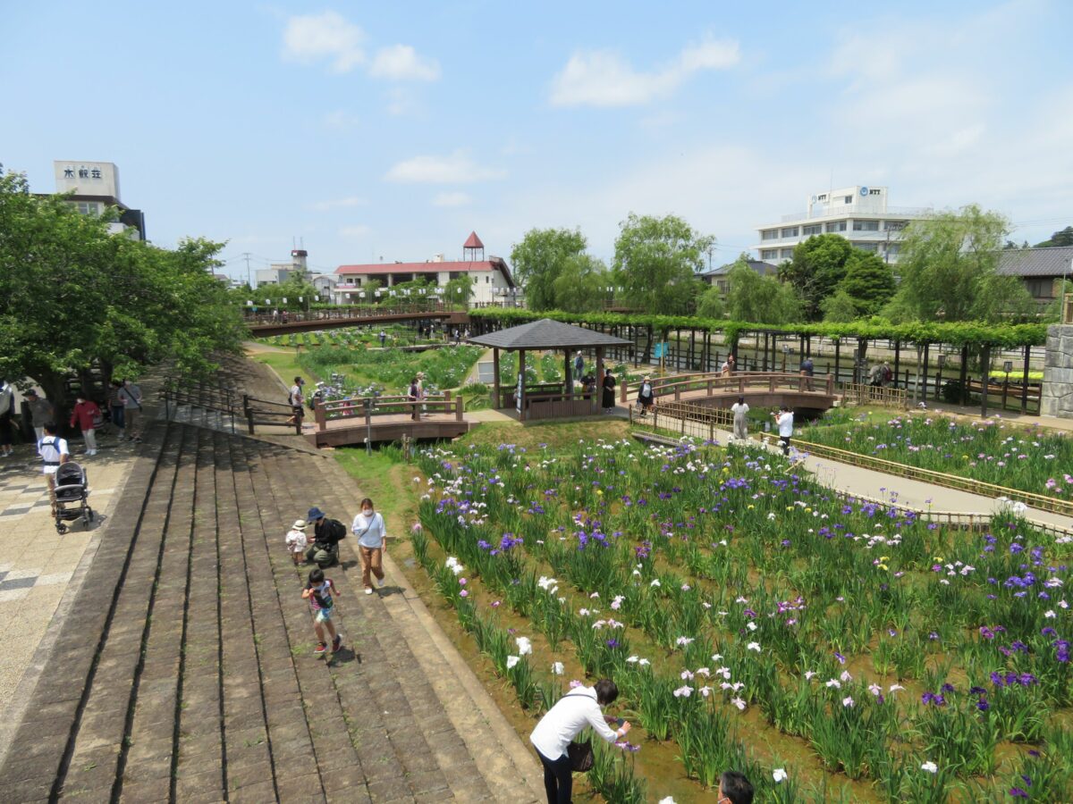 利根川に注ぎ込む前川沿いを整備した「水郷潮来あやめ園」