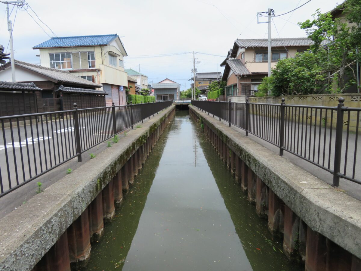 潮来市の市街地を流れ利根川に注ぎ込む前川