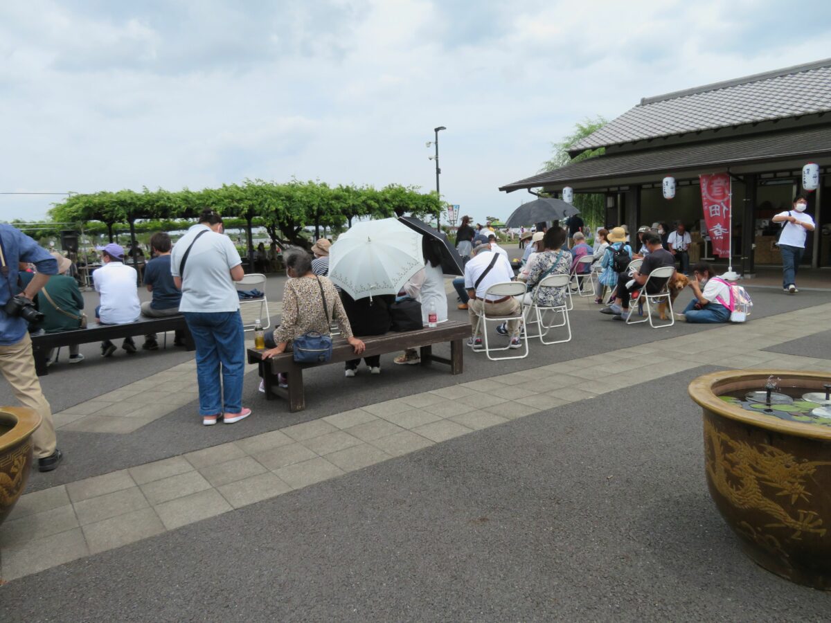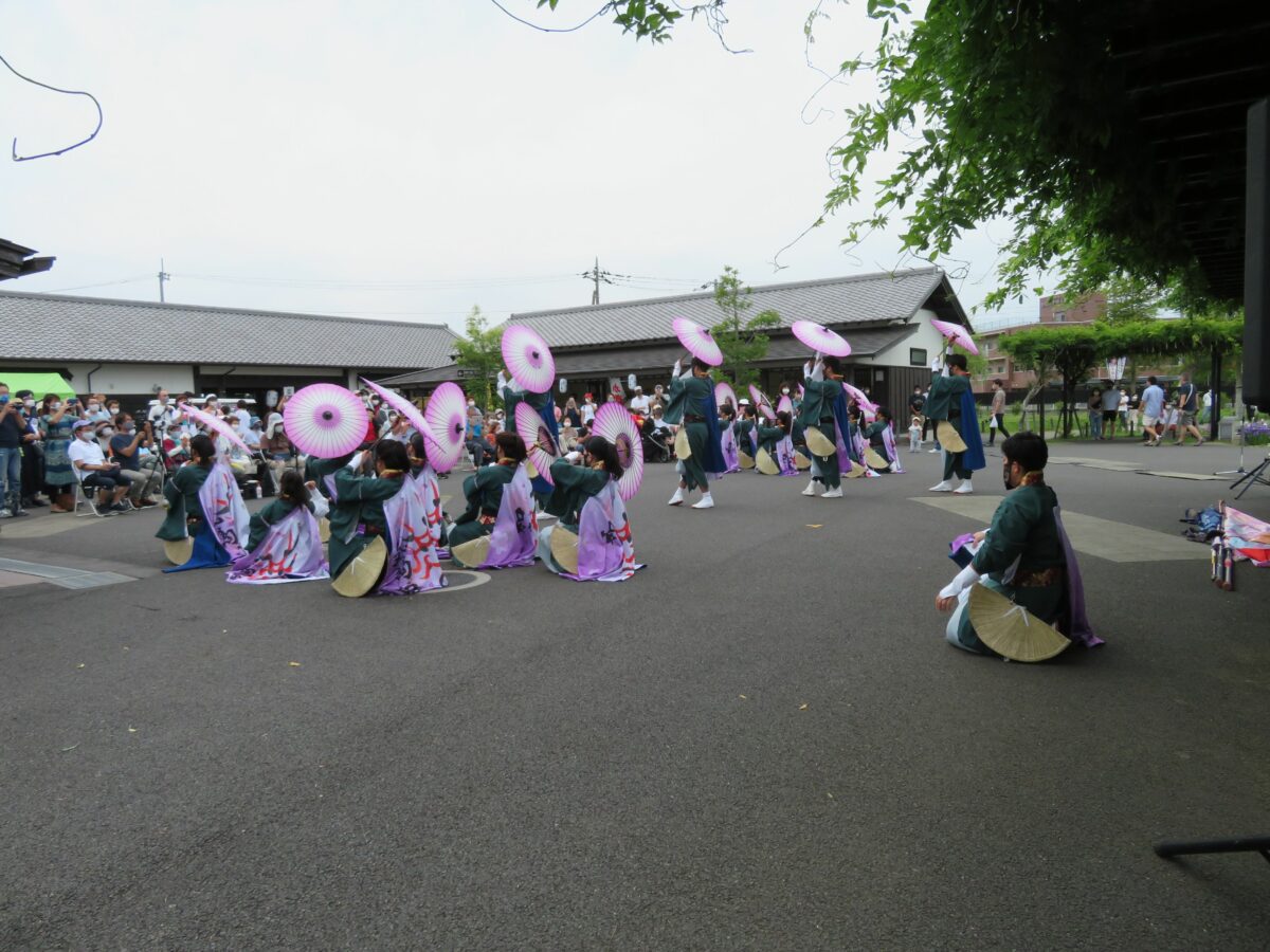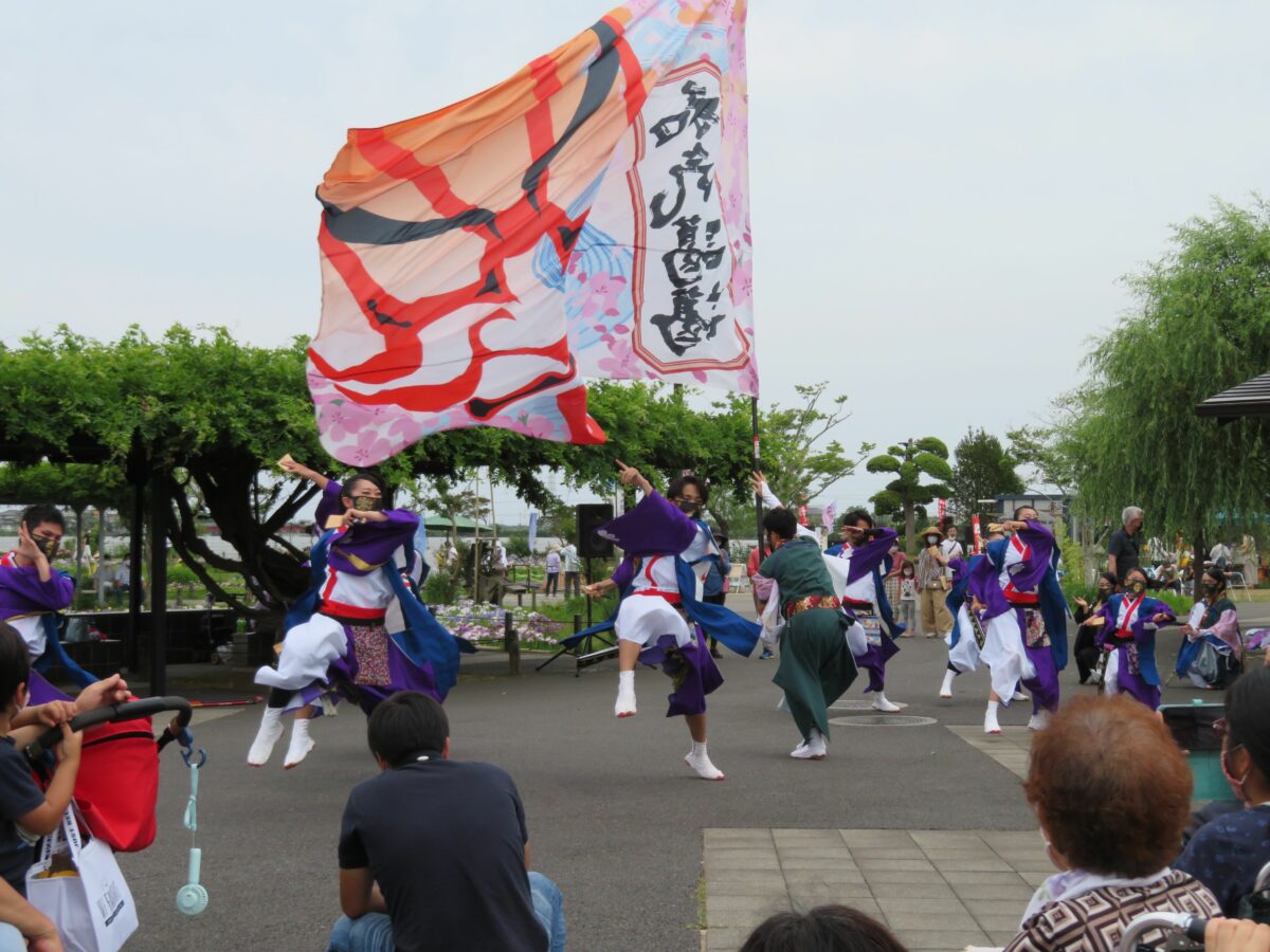 サッパ舟の他にも花菖蒲田の傍らでは野点が設けられ、あやめ広場ではよさこいの演舞が行われ、多種多様の楽しみに満ち溢れています。