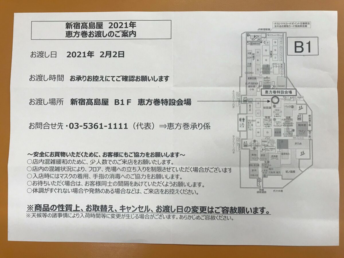 今回は新宿高島屋で予約をしたのですが、郵送で届いた予約票には受け取り場所の案内が同封されており、スムーズに受け取ることができました!