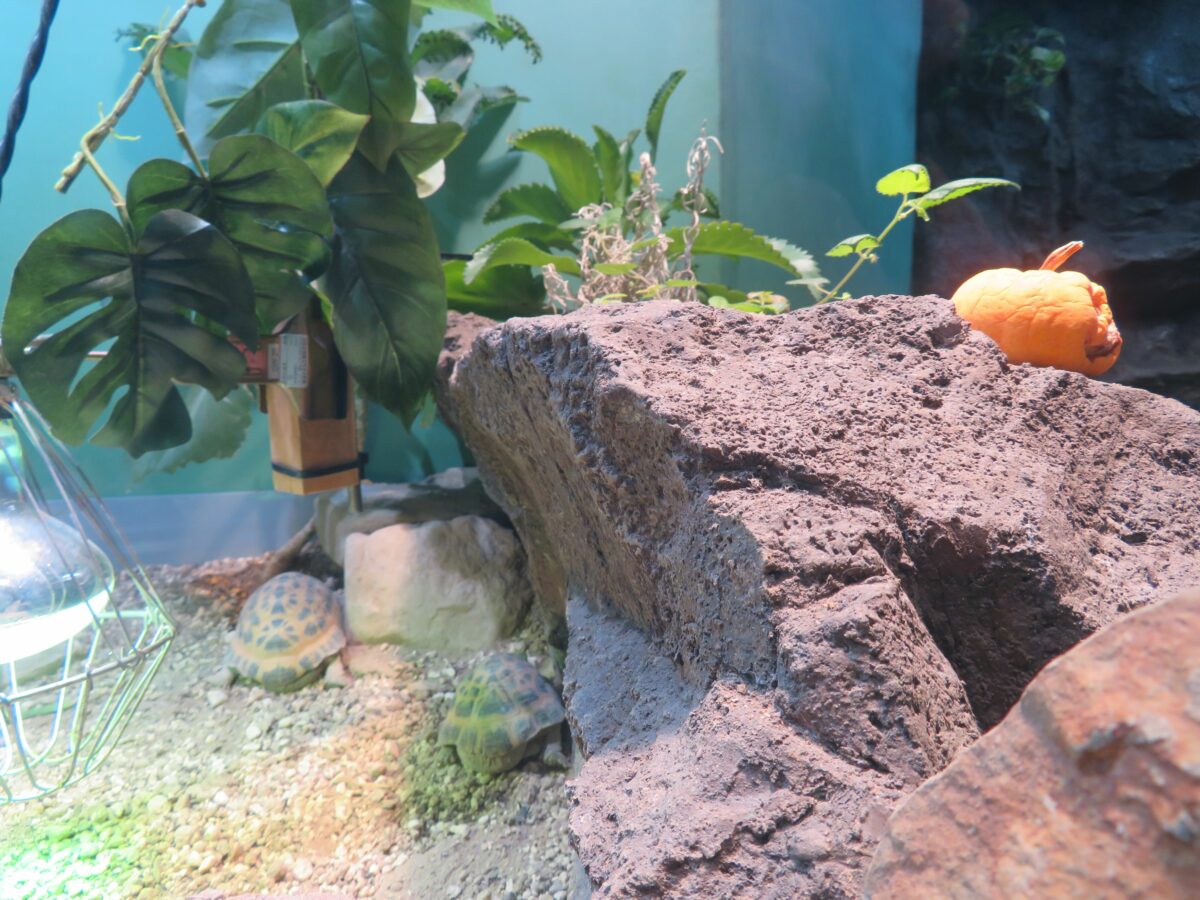 サンシャイン水族館でハロウィンを楽しむホウシャガメとビルマホシガメ