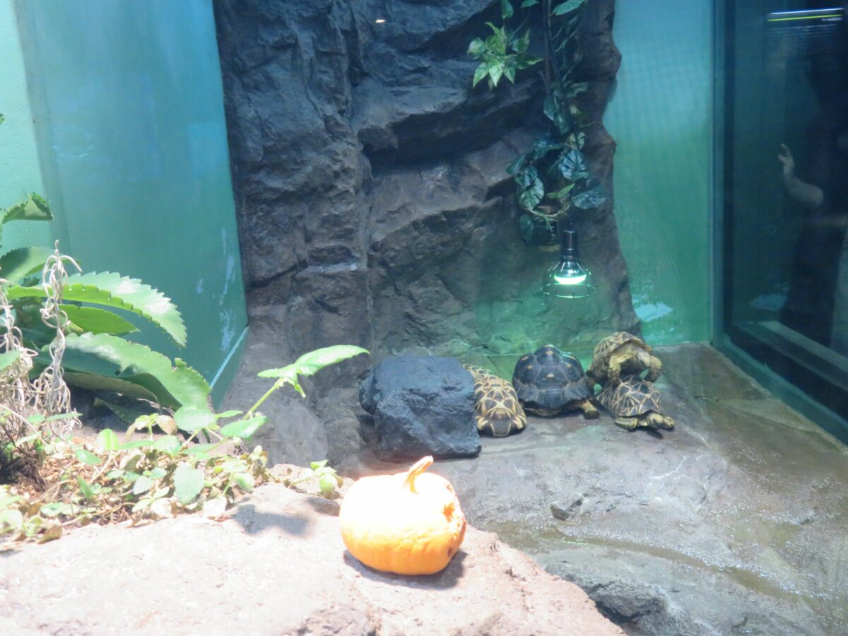 サンシャイン水族館でハロウィンを楽しむキバラクモノスガメとパンケーキガメ