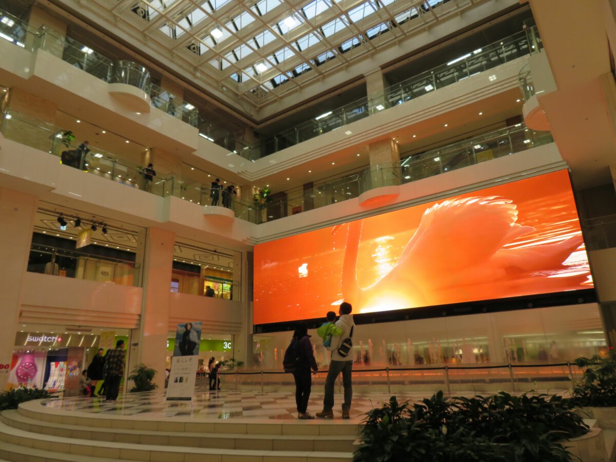 10月31日に「おうちで参加ハロウィンパレード」の動画作品が放映されるアルパ地下1階の噴水広場の大型ビジョン