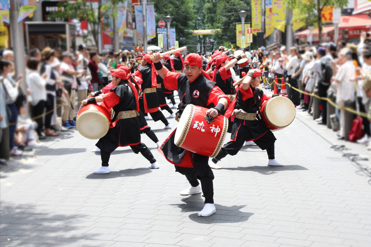 5月28日、池袋駅東口からのびるサンシャイン60通りでは、大迫力のエイサーのパフォーマンスが披露されます。約10チームが入れ替わりながらサンシャイン通りで舞い踊ります!