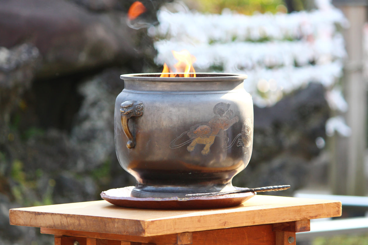 続いては「燻桃(くんとう)」!大きな香炉が境内の真ん中に設置され、中から火が上がりました!