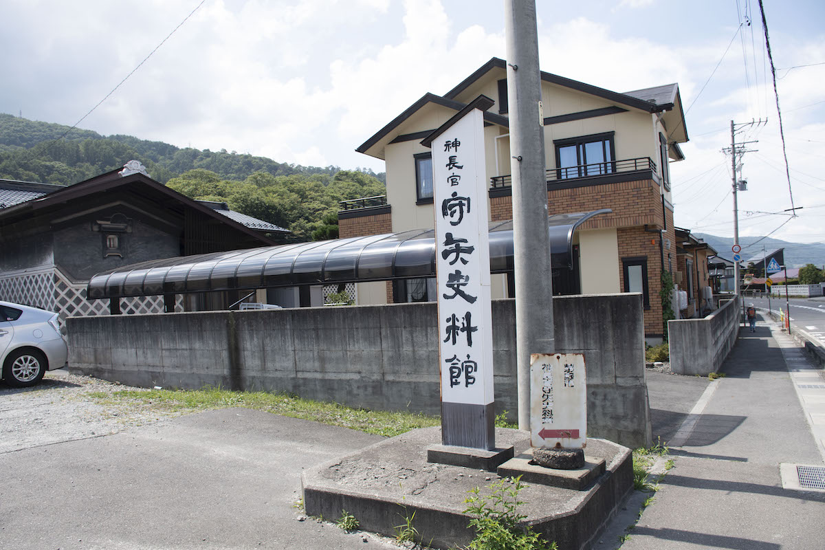 2020年8月30日、実際にこの史料館を訪れてきました。最寄りの茅野駅からは徒歩35分。駅からは散歩感覚で歩いてみました。途中、川や公園、神社などを見ながら、地域の雰囲気を味わうことができます。この看板を左手に進むと、到着です。