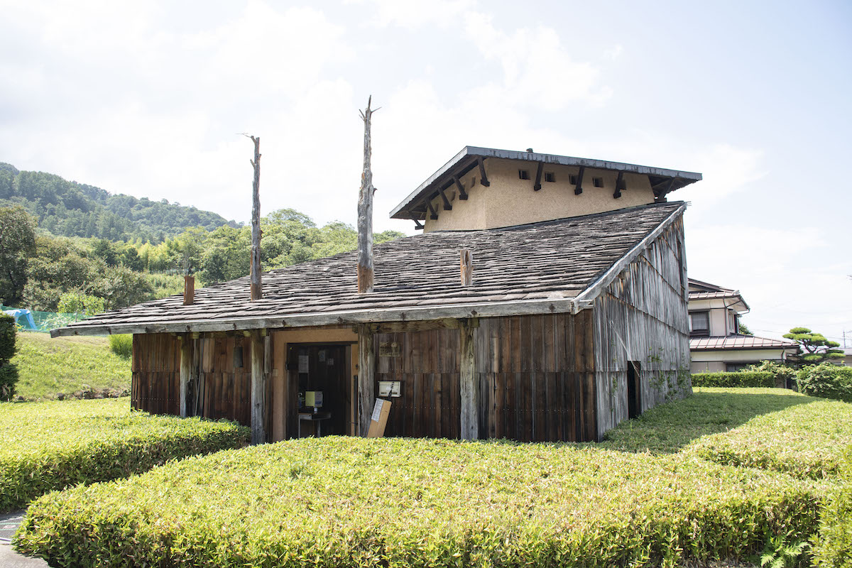 こちらが神長官守矢史料館。建築家の藤森照信さんのデビュー作で、4本の柱は地元産の木を使っているのだとか。中世の信仰をイメージしたモチーフとなっています。この史料館の名前にもなっている神長官の守矢家は、大和朝廷の勢力が及ぶ前からこの地にいた族長で、中央勢力に破れた後は祭祀の実権を握るようになりました。その守矢家の敷地内にこの史料館は建てられています。