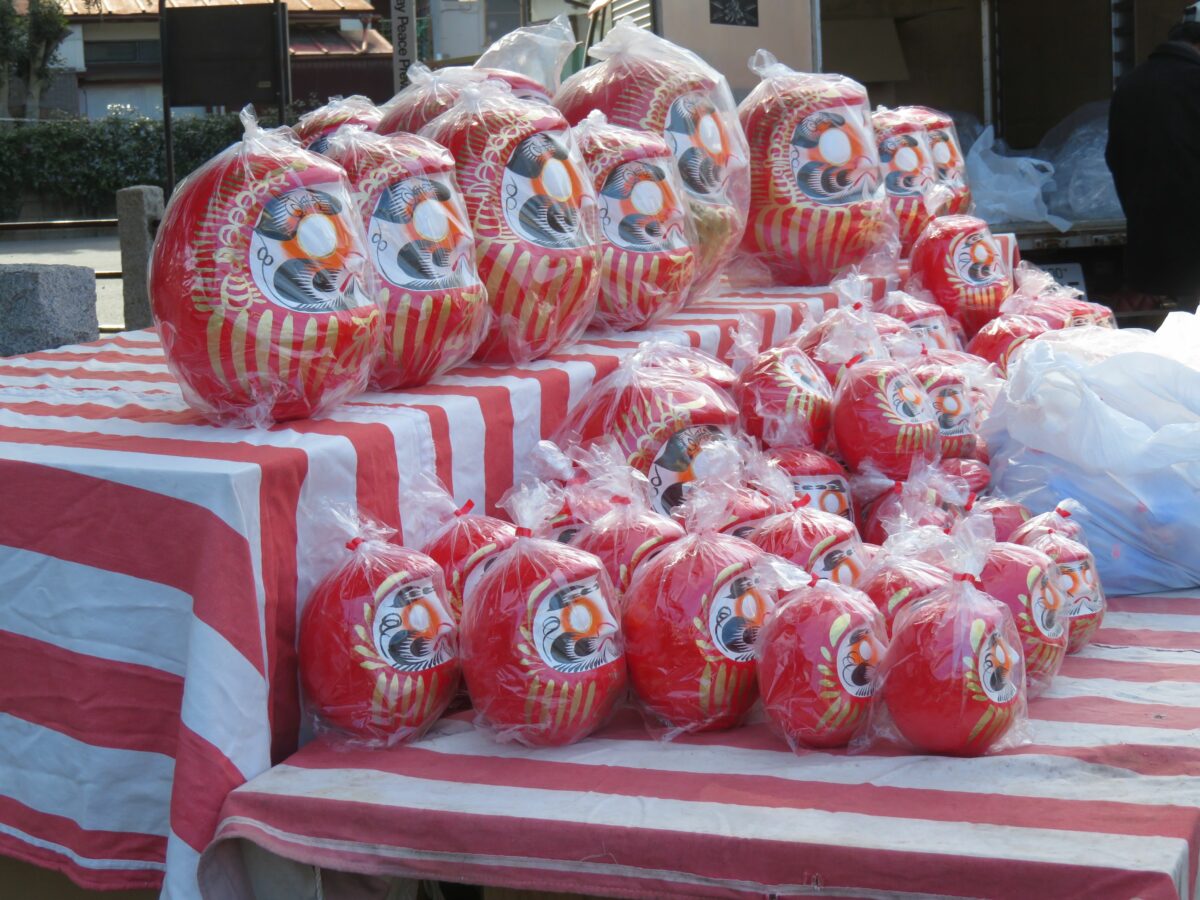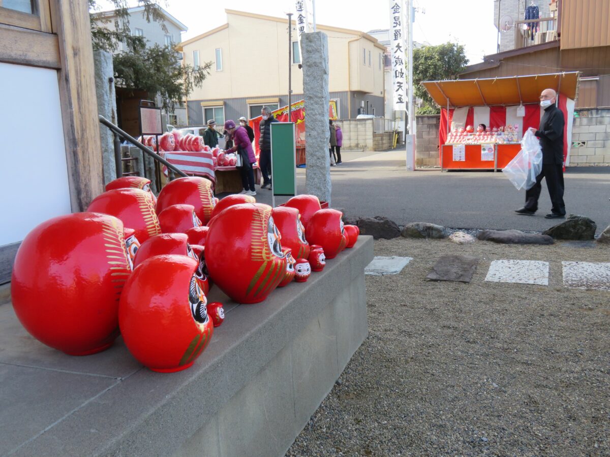 だるまは、宗派を超えた縁起物として日本人の生活に定着しています。新年ばかりでなく一年を通して全国各地で「だるま市」が行われています。さいたま市中央区の金比羅天堂では、毎年2月10日に「鈴谷のだるま市」が開催されています。2021年も2月10日の早朝6:00からの午前中に行われました。