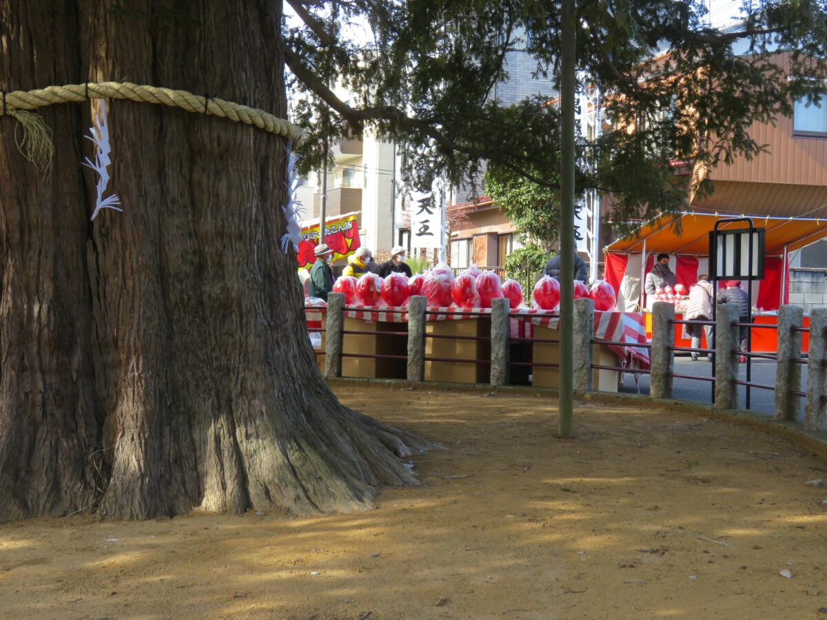 さいたま市中央区の金比羅天堂では、「鈴谷のだるま市」が毎年2月10日に開催されています。堂に接する樹齢1000年を超える神木の「与野の大カヤ」の根元に、「だるま市」の縁起物が並びます。