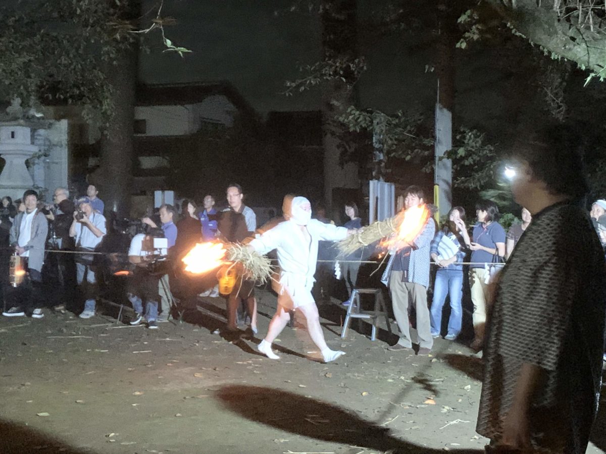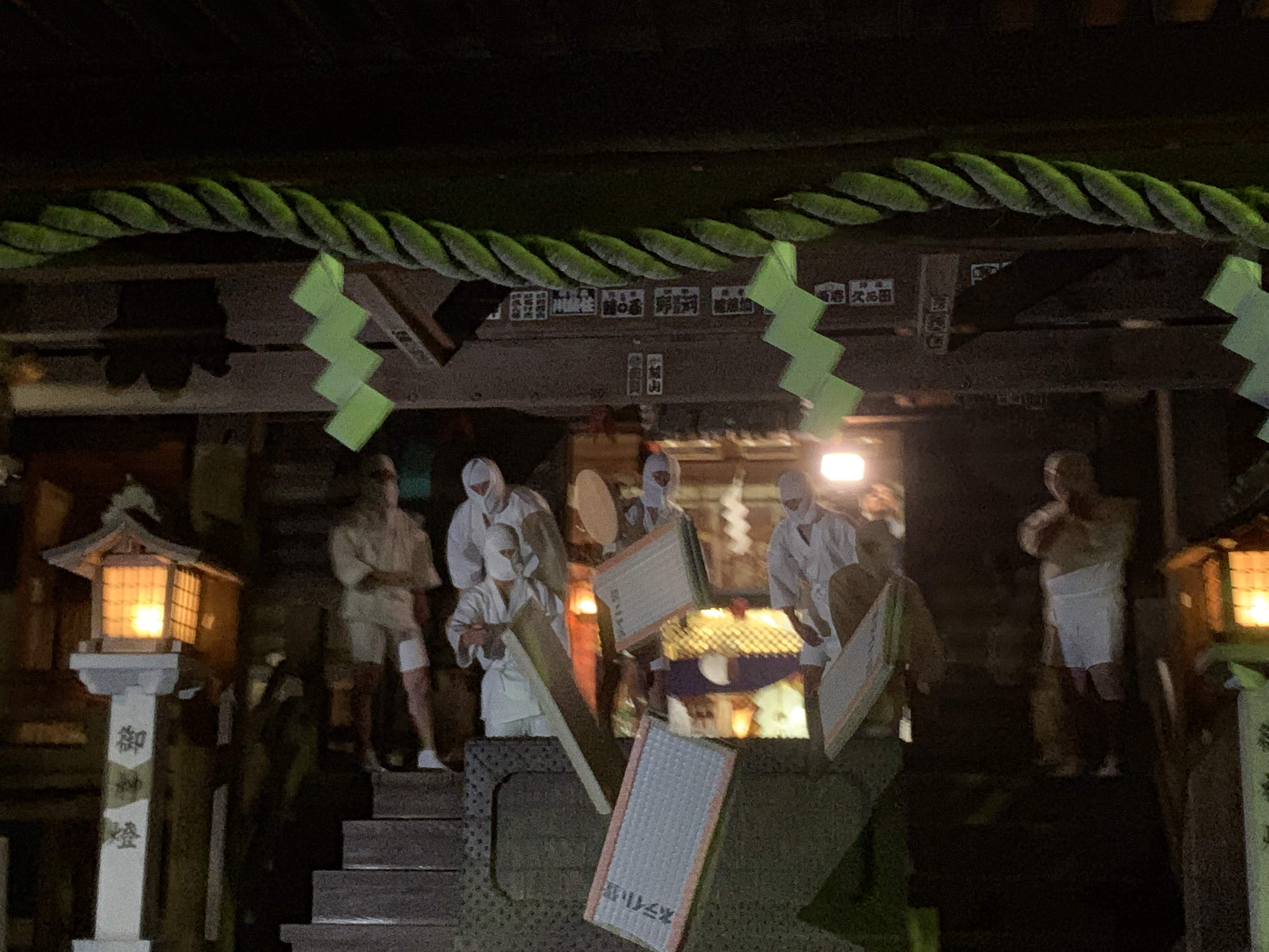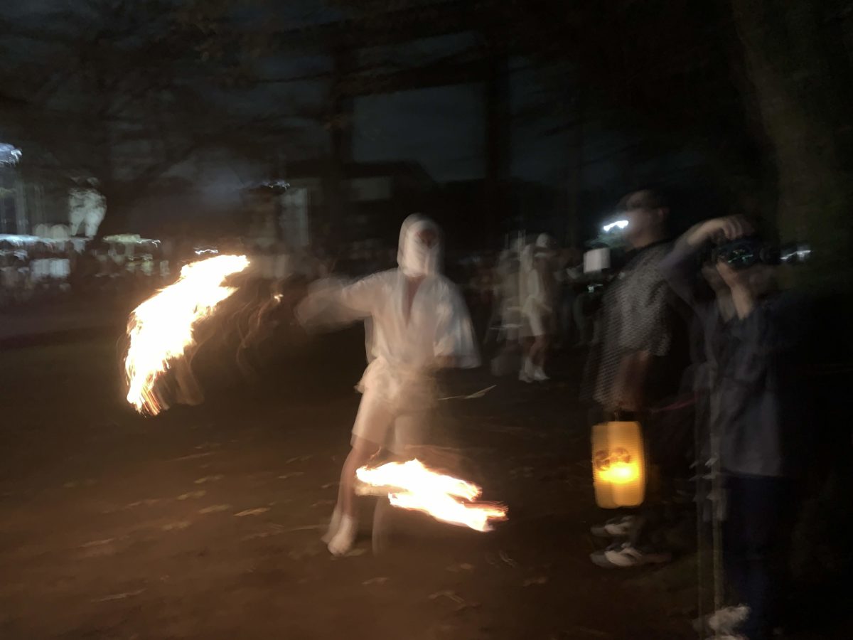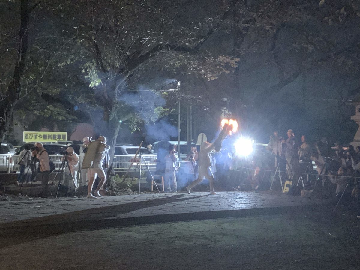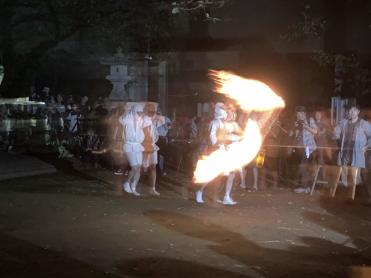 秋の夜、神社の境内で白装束の男たちが松明と畳をもってこっちへドドドドドドドと走って向かってくる。うん。何ともシュールな光景です。