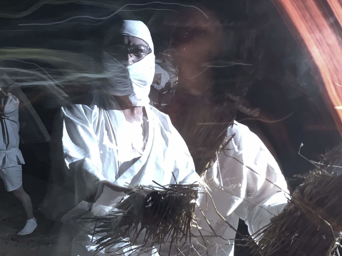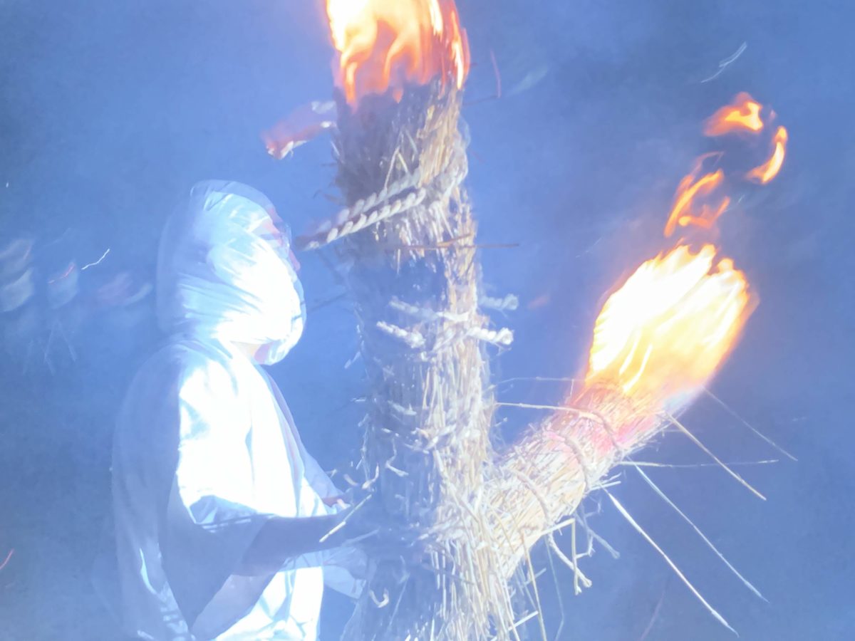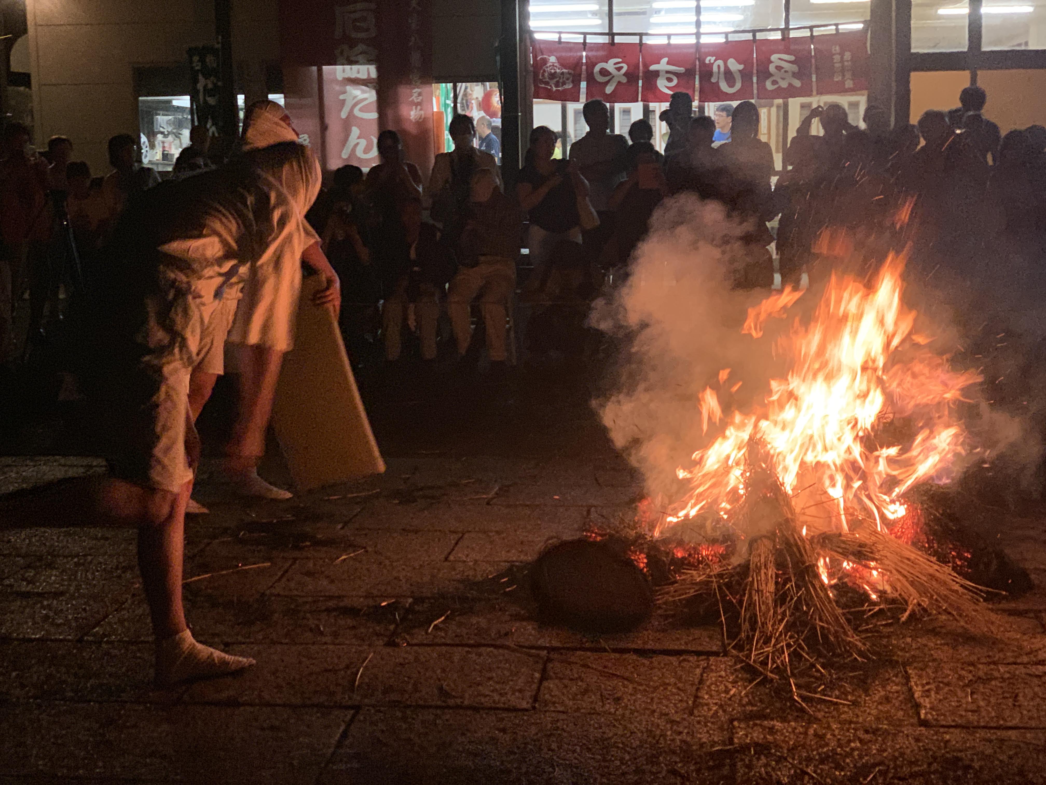 なお、この畳と鍋でタバンカしてから松明で火の粉をまき散らす一連の流れは全部で都合3回くり返されるので、「シャッター・チャンスを逃した」「火の粉を浴び損ねた」という方はぜひ2回目、3回目にもチャレンジしてみてくださいね。