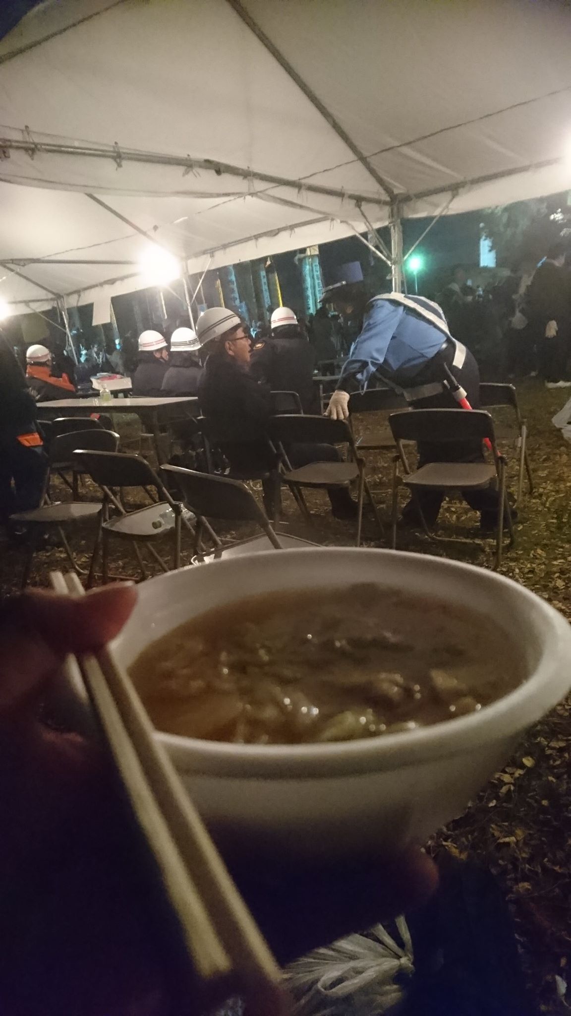 炊き出しの芋煮がうれしいけど、ピリピリした雰囲気の警察官と消防士さんたちを眺めながらなので、どんな味だったかあんまり覚えていない。