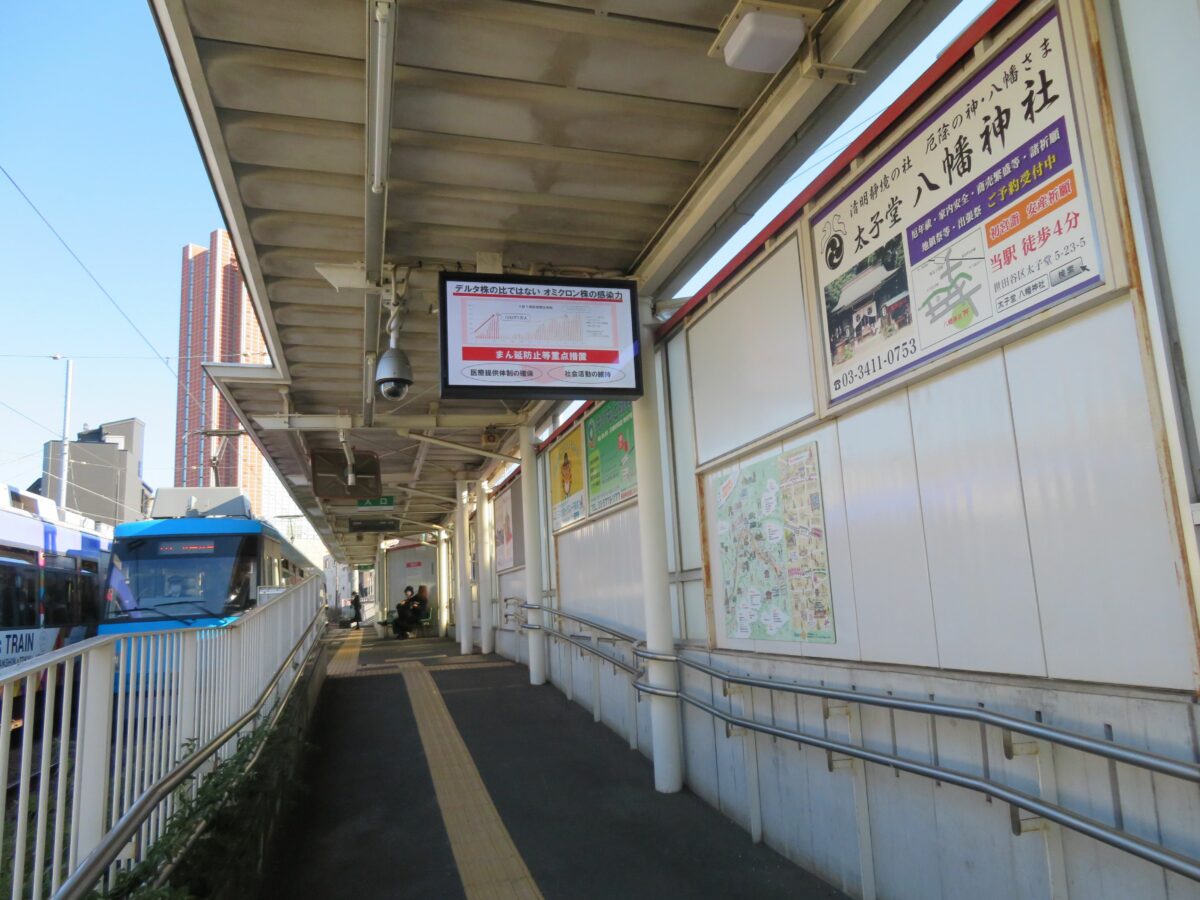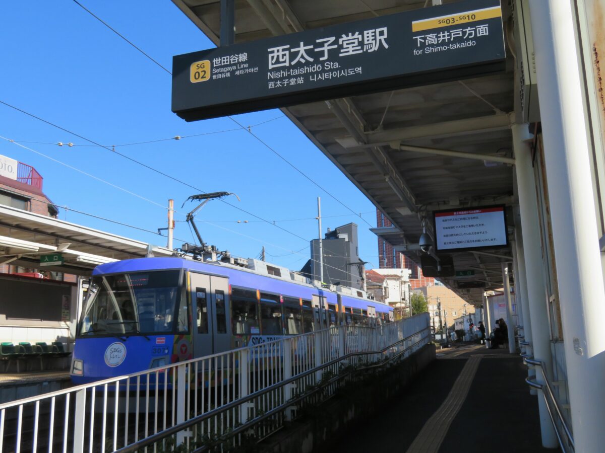 太子堂八幡神社は、東急世田谷線の西太子堂駅の北約400メートルのところに社殿を構えています。駅のホームにも道案内の掲示があるので、一本道であることが確認できるでしょう。