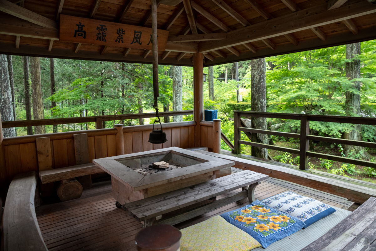 伐採した木材を使い、参拝者が休める雰囲気の良い東屋や、檜の香りが心地よいトイレ、森を散策するための木道、山の上にはツリーハウスを建設するなど、全て狐塚さんのアイデアと林業ボランティアの方々の力で、一つ一つ作り上げたそうです。わずか20年前までは一帯が森で覆われていたと聞くと驚くくらいに明るく、施設が充実しています。