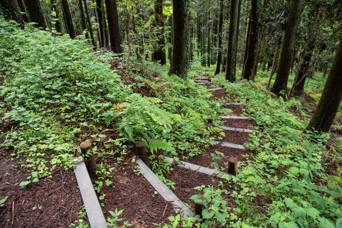 「大室の森林をつなぐ会」によって整備された、ツリーハウスへと向かう遊歩道。(老朽化によりツリーハウスは2021年現在立入禁止)