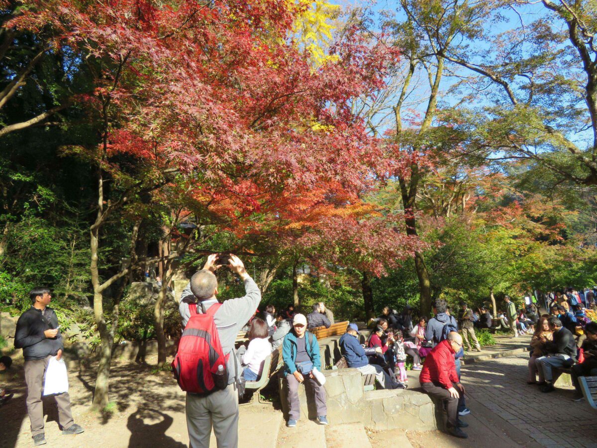 高尾山は戦国時代には北条氏、江戸時代には徳川幕府によって山の自然が保護されました。豊かな自然を残す山には一年に約300万人が訪れ、世界一の登山者数を誇っています。『ミシュラン・グリーンガイド・ジャポン』では三つ星の評価を受けています。四季の移ろいによって異なった彩りで包まれる高尾山でも、最も人気が高いのが秋の紅葉の時期です。例年11月には「高尾山もみじまつり」が開催され、山麓から山頂まで秋色の化粧を纏います。