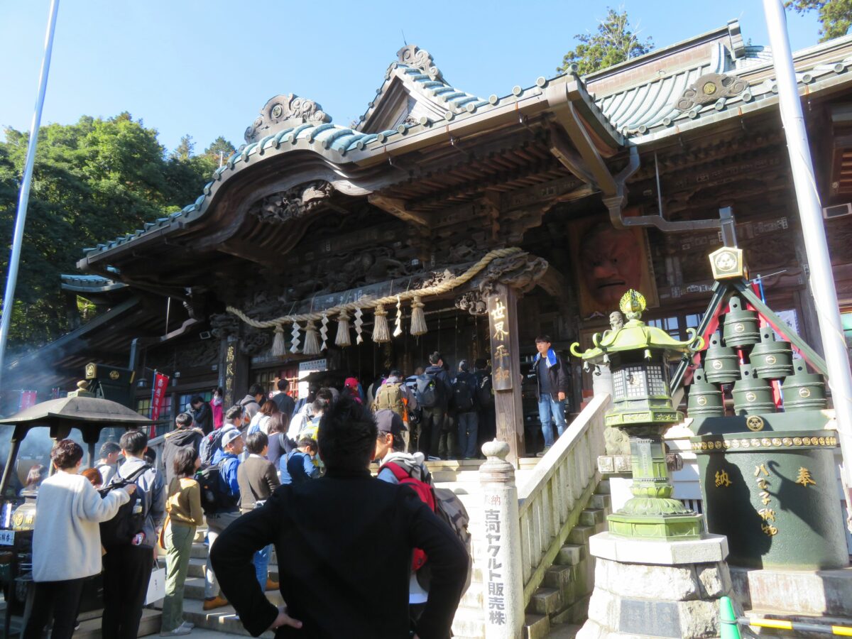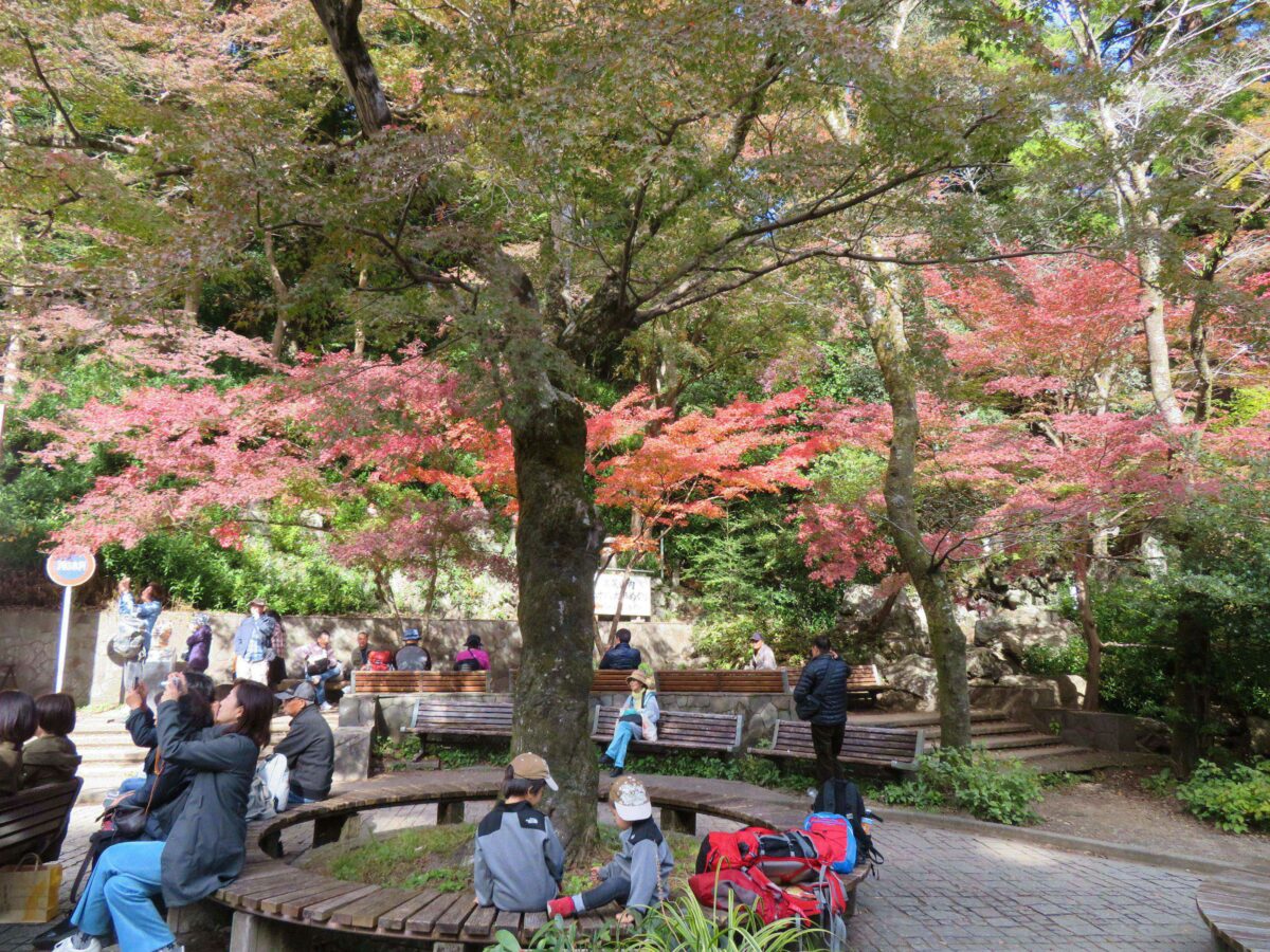 「高尾山もみじまつり」期間中の高尾山駅前の広場