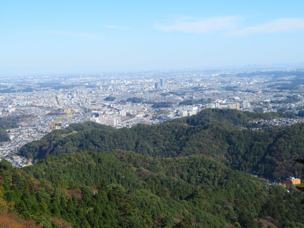 「高尾山もみじまつり」期間中の高尾山駅前の広場の展望エリアからの眺望