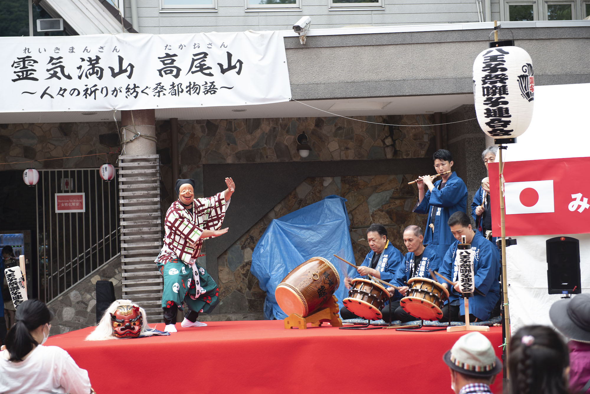休日の高尾山のケーブルカー前に大勢の観光客が訪れ、順々に演じられる伝統芸能に見入っていた。このイベントが伝統芸能継承の文脈で、どのような意味を持つのだろうか?そのような問いとともに、このイベントの様子を振り返る。