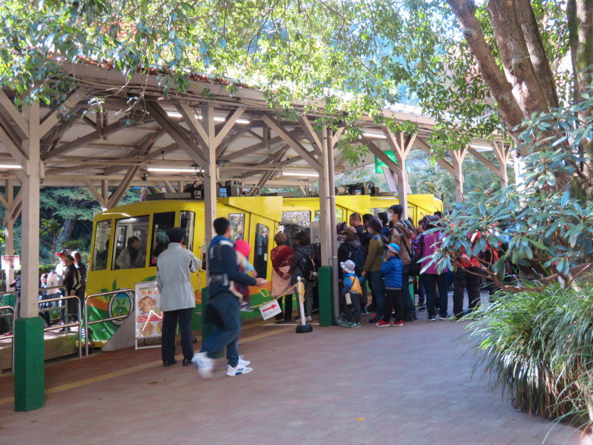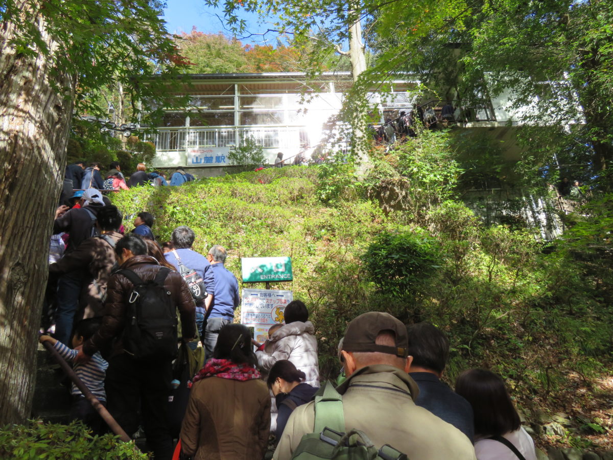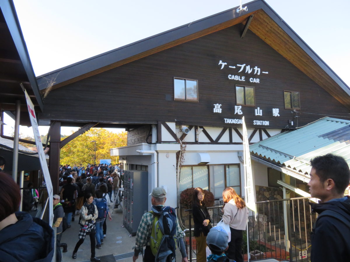 ケーブルカーの高尾山駅に彩りをつける紅葉