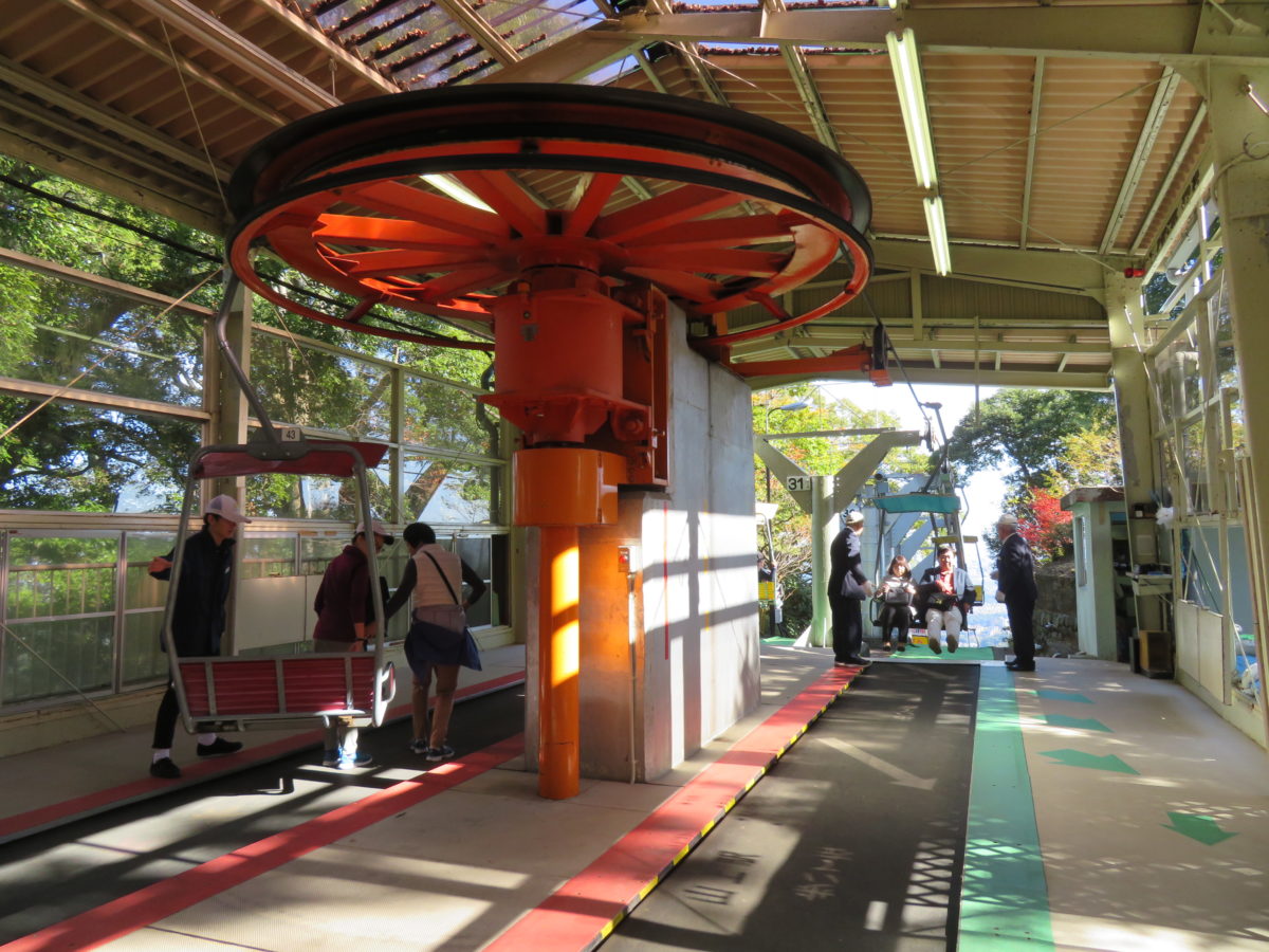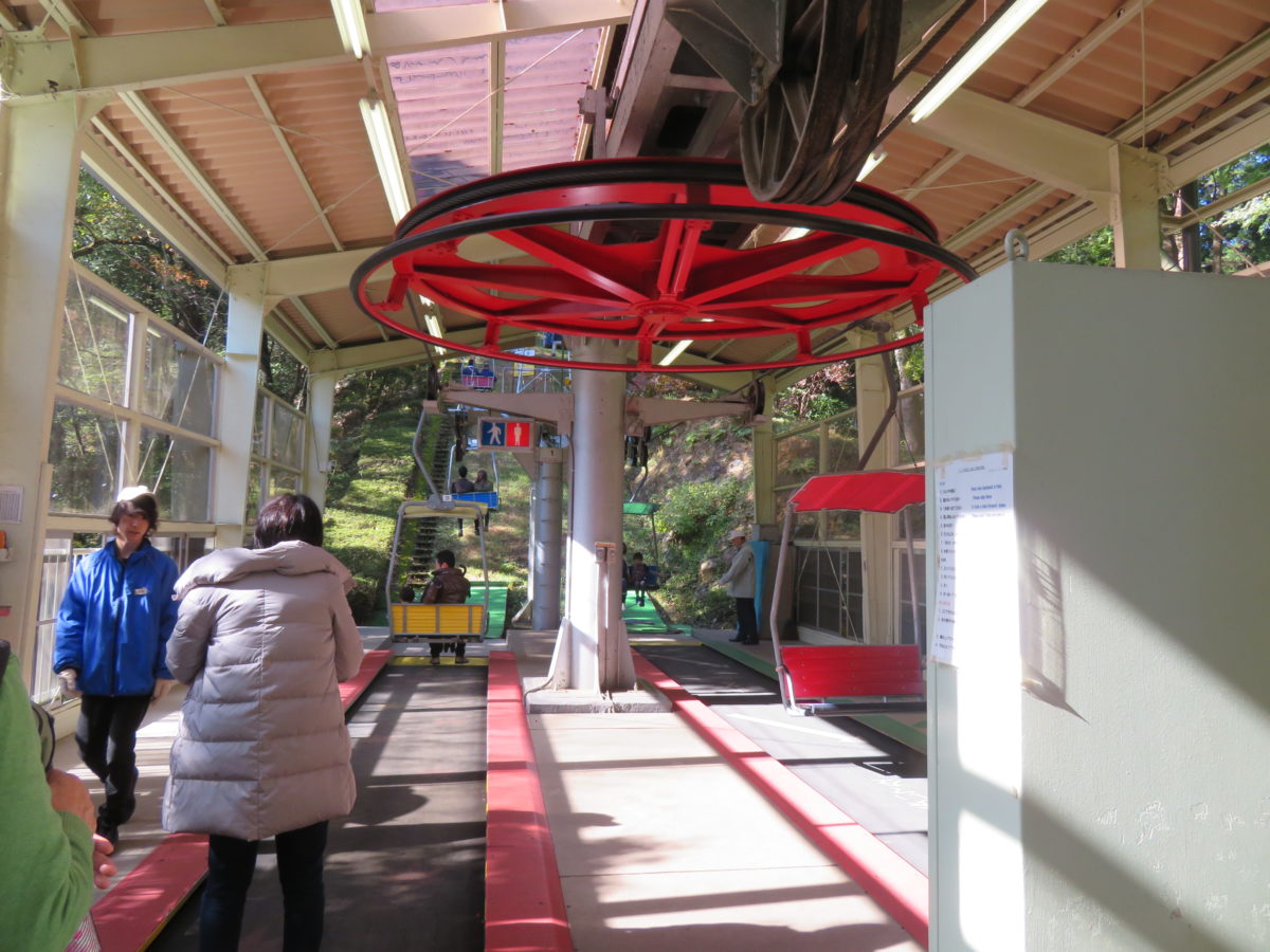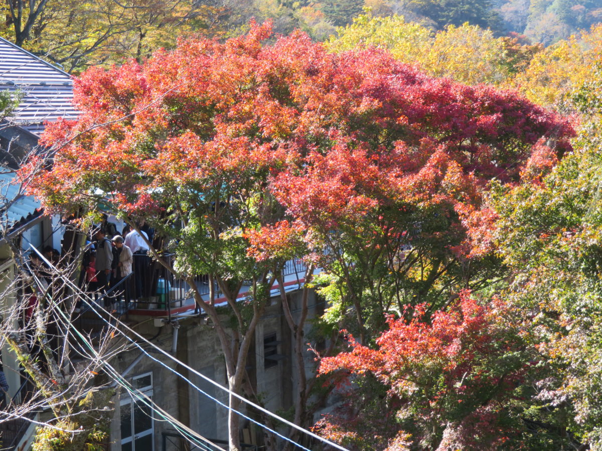 ケーブルカーの高尾山駅に彩りをつける紅葉