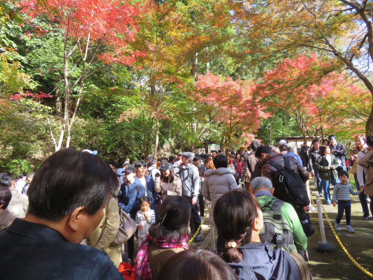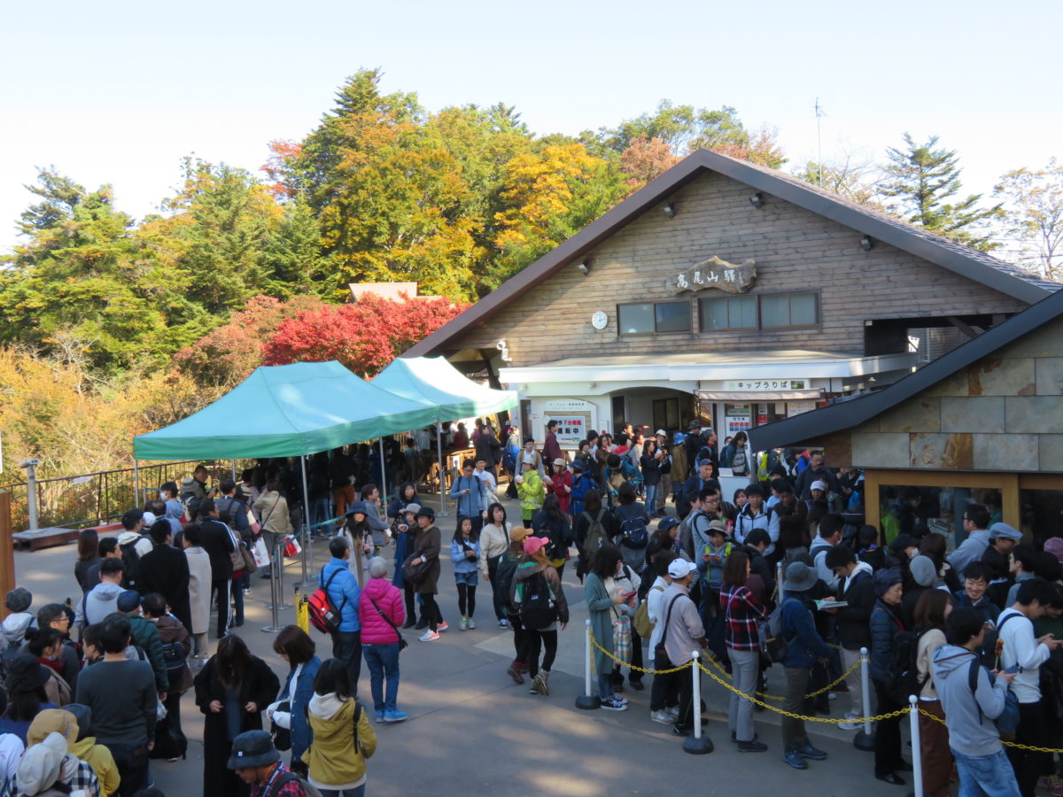 高尾山には歩きやすい登山道が整備されており、麓から山頂までハイキング感覚まで登山することもできますが、ケーブルカーあるいはリフトを利用する方が楽といえるでしょう。ただ、「高尾山もみじまつり」の期間中は長い行列に並ぶ必要があります。