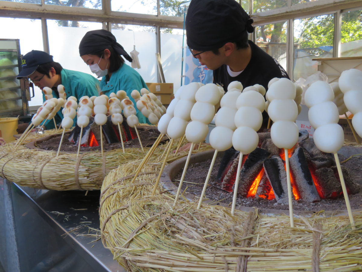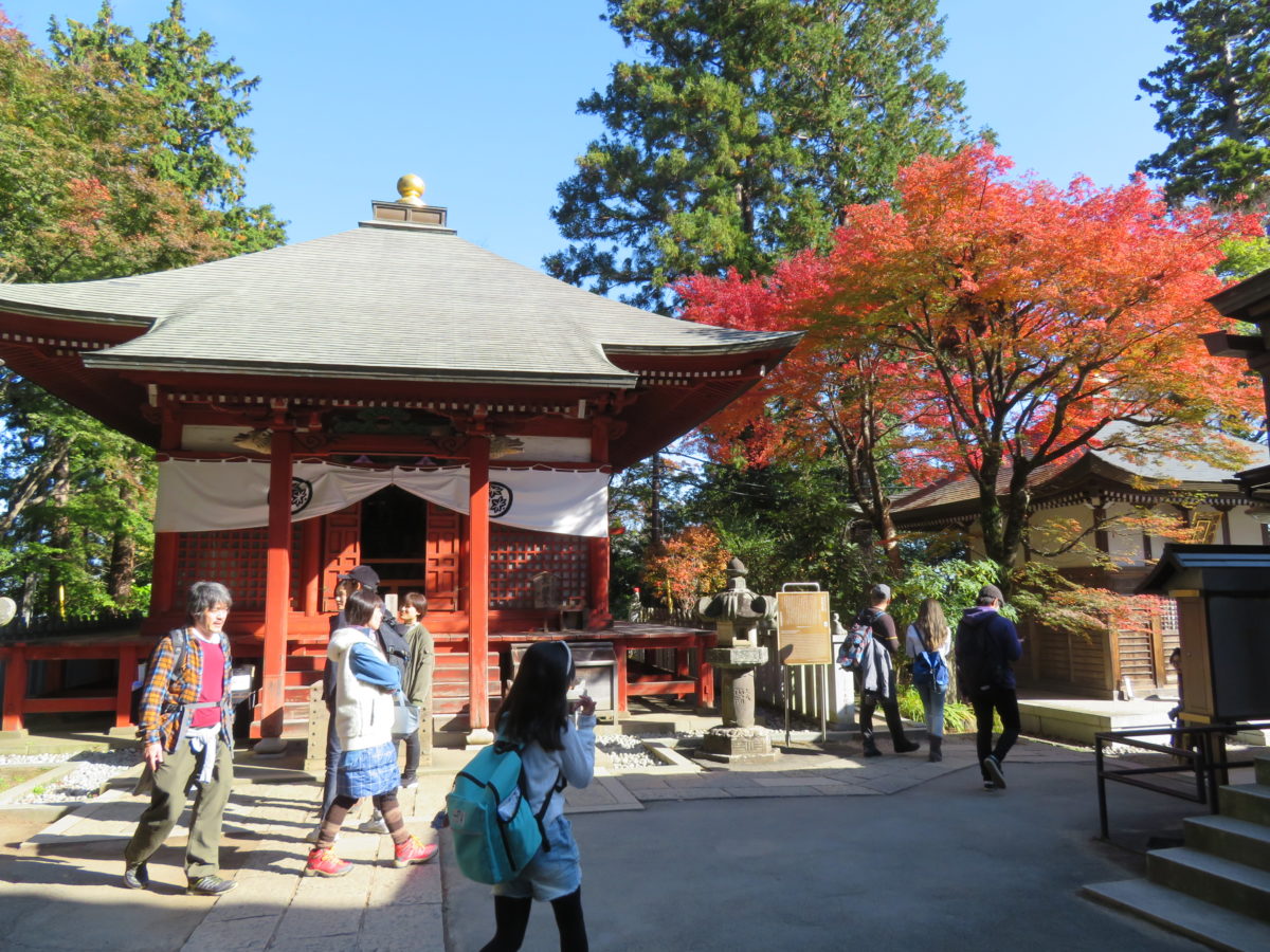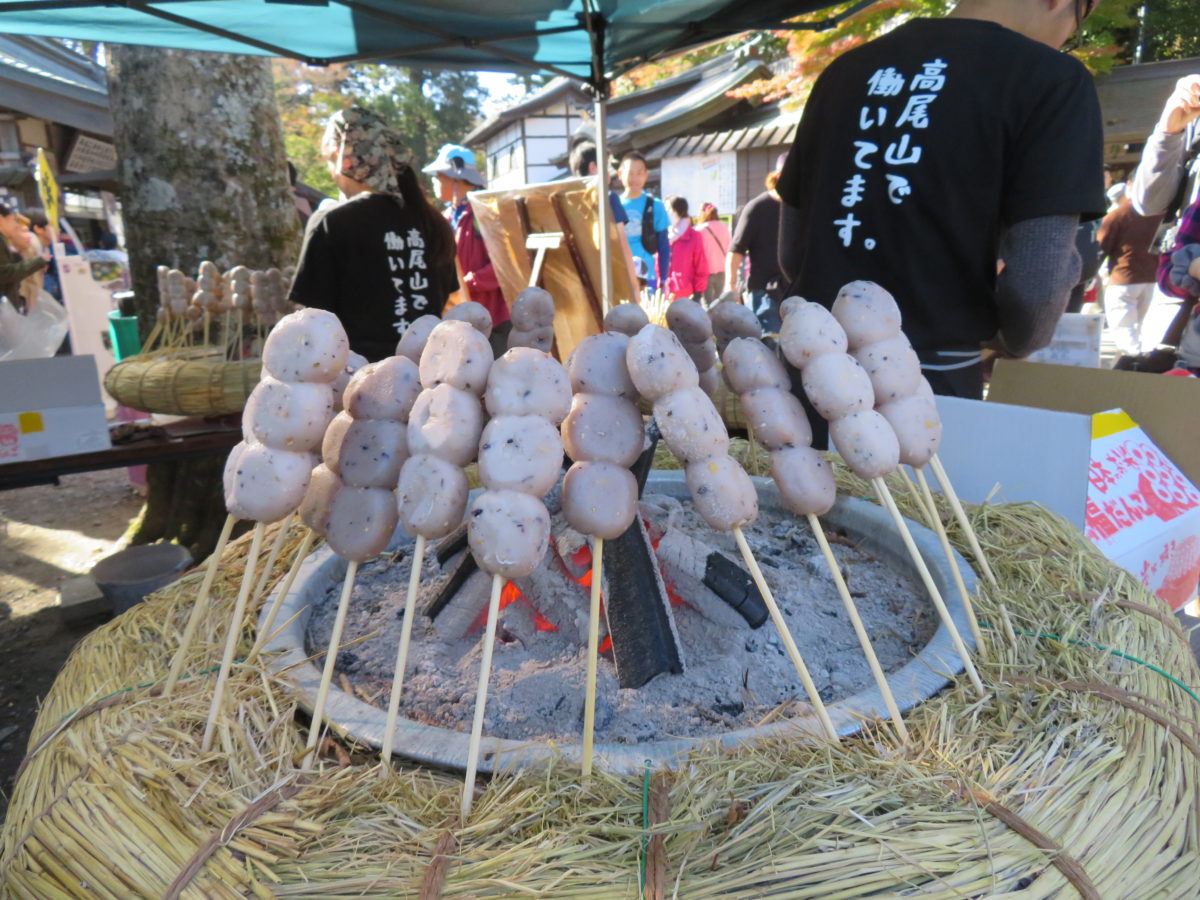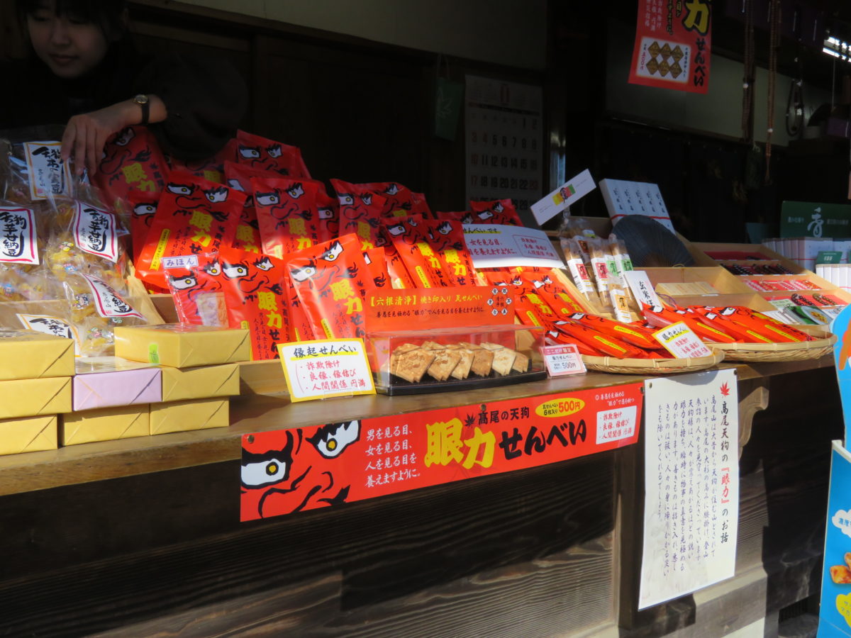 紅葉が彩る薬王院の境内で味わう「天狗十穀団子」や「眼力せんべい」