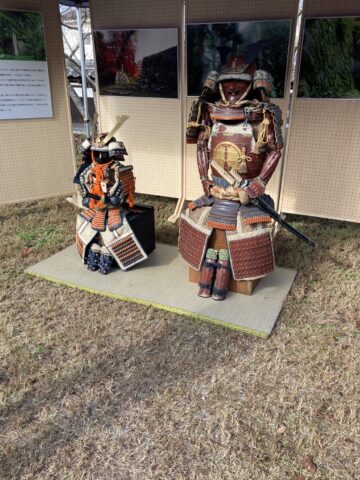 兜や甲冑の展示もあります。兜は被ることができ、兜をつけて撮影している人もいました。