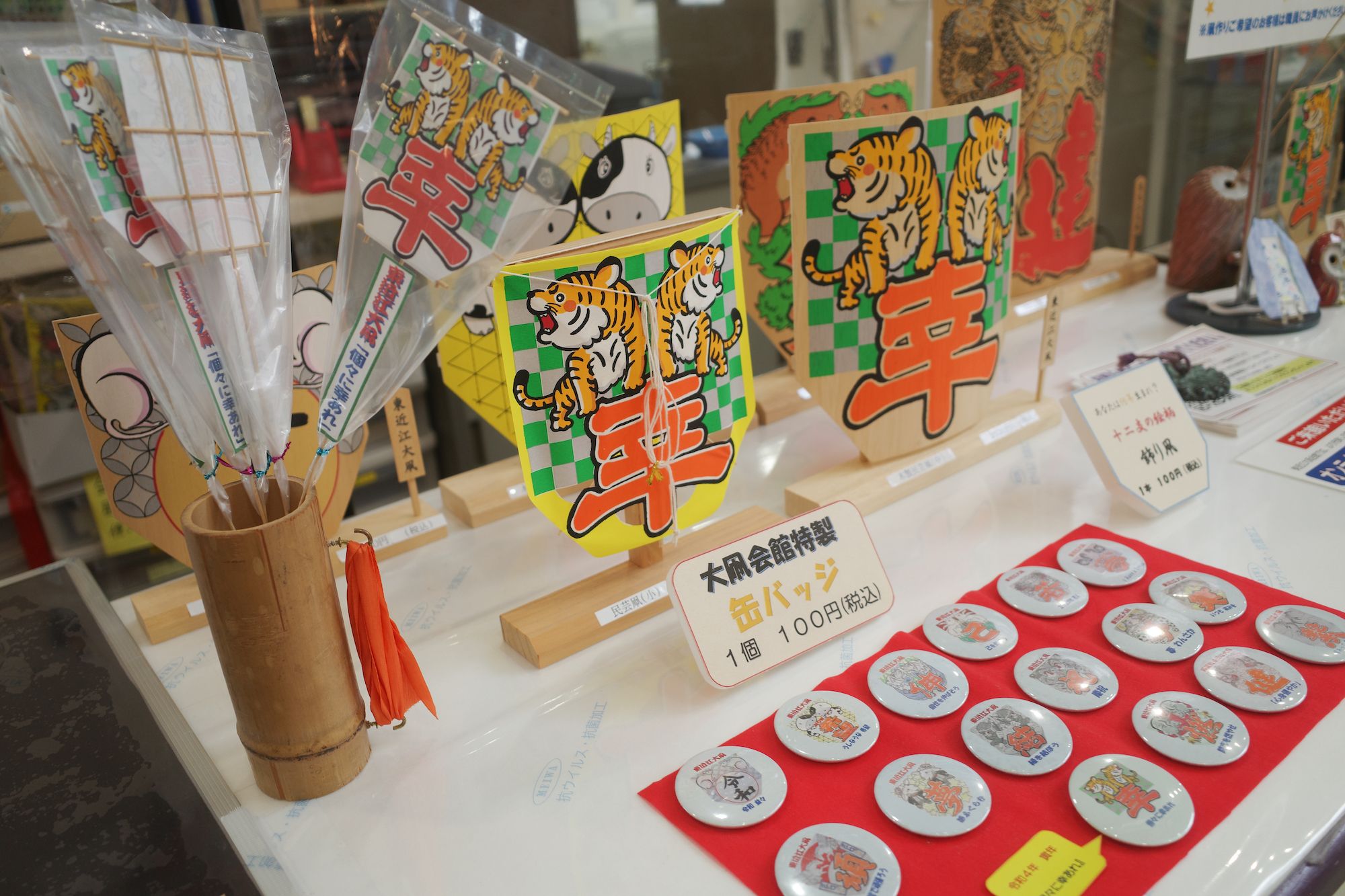 また、こちらのようにミニチュアサイズの凧や缶バッジのお土産も見られた。事前に予約をしておけば300円で凧作り体験もできる。凧を実際に作ってみることで、より理解を深めることもできるかもしれない。