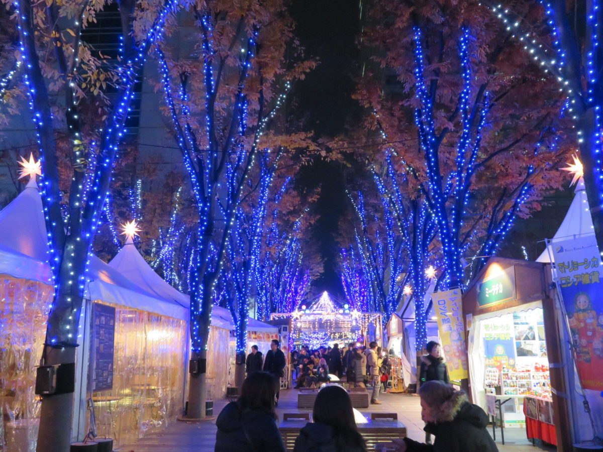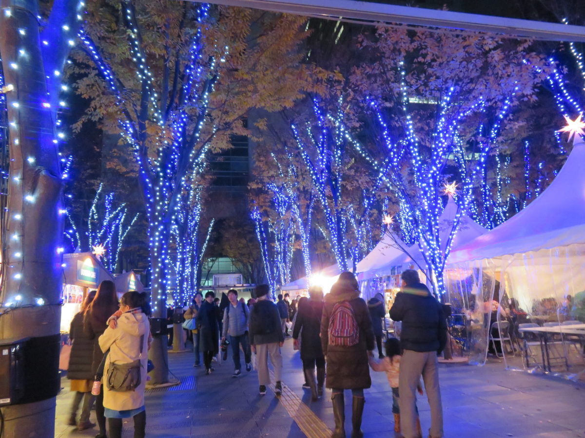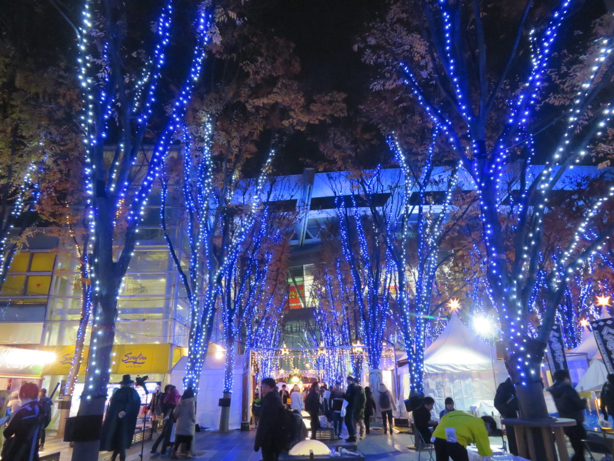 約150本のけやきの木にブルーをメインとした装飾が施される「けやきひろば」