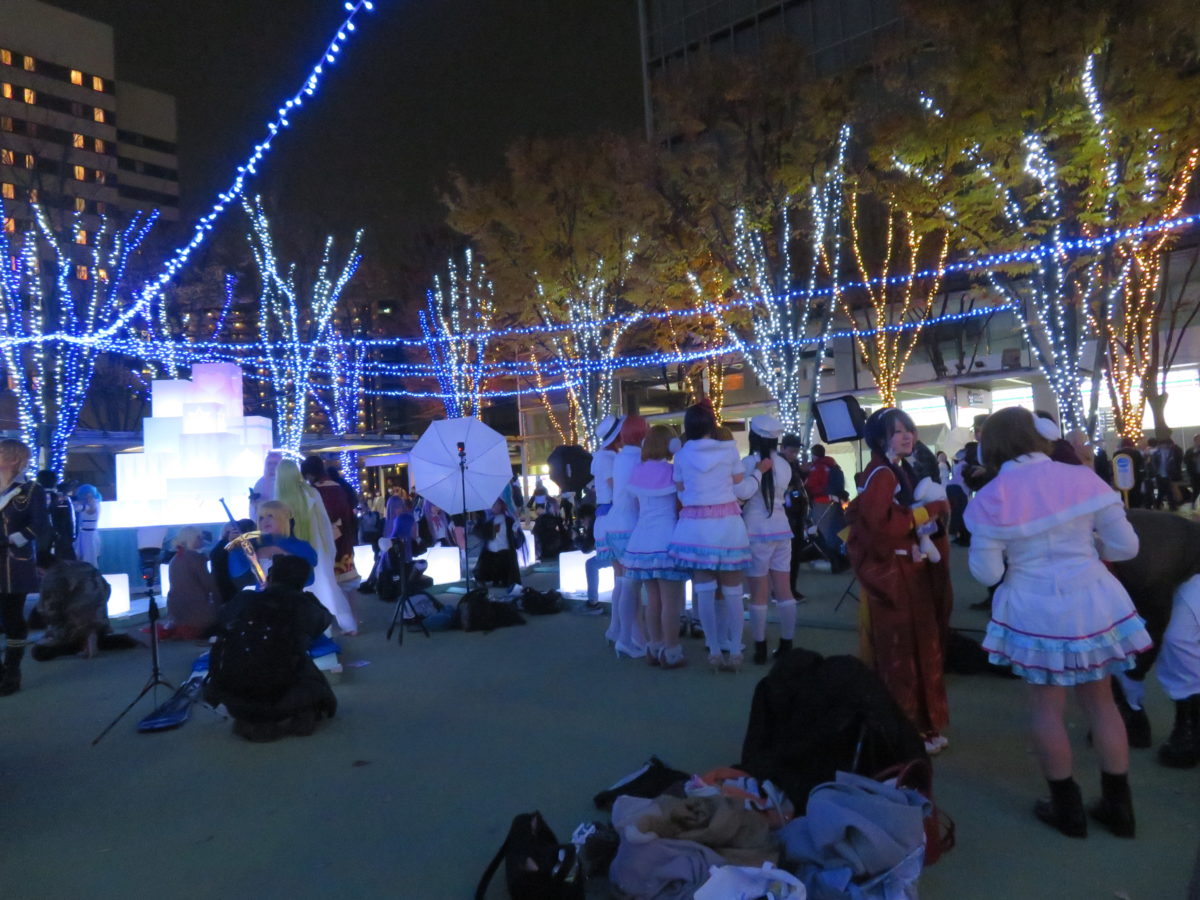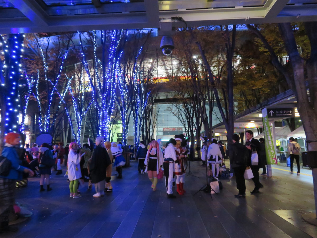 「けやきひろば」で写真撮影をするコスプレイヤー