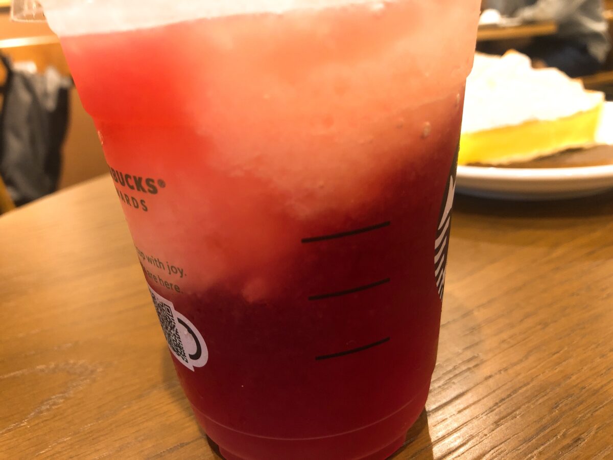飲んでみた印象としては、レモネードといっても強い酸味は感じず、ごくごく飲めるおいしさです。スターバックスのパッションティーは普段から定番メニューとして飲むことができますが、単品で飲むと酸味がかなりはっきり感じられるティーです。しかし、このフローズンレモネードの甘味のおかげでマイルドに全体がまとまっています。パッションティー部分、フローズンレモネード部分で味が分かれていたり「レモン」「ピンクグレープフルーツ」の味が個々ではっきりわかれていたりするというよりは、ドリンク全体にいろんな味がバランスよく溶け込んでいる印象を持ちました。また、今回の夏のドリンクは、氷がフローズン状になっているため内容物全体を飲み干せて、氷がごろごろ入っているアイスドリンクのように最後に氷が残ってしまうよりも、おトクな気持ちになれました(笑)