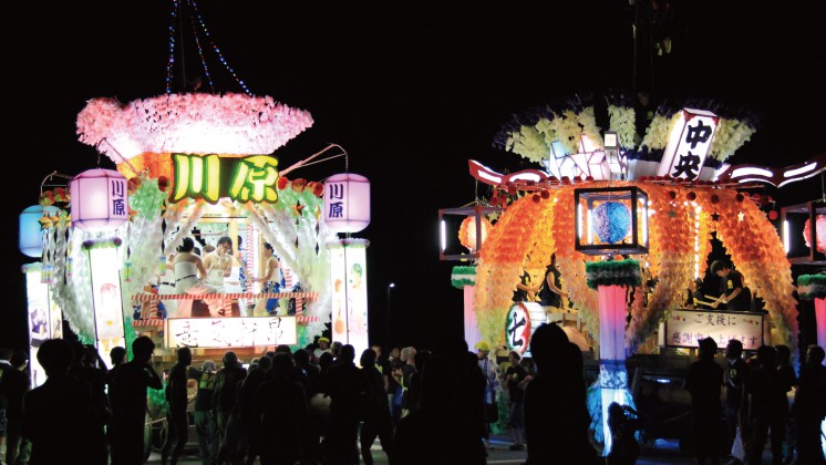豪華絢爛にライトアップされた山車が引き回される「うごく七夕」、七夕飾りをあしらった2台の山車が激しくぶつかり合う「けんか七夕」、陸前高田市民はもちろんのこと、知る人ぞ知る奇祭として、心待ちにしている方も多いお祭りです。