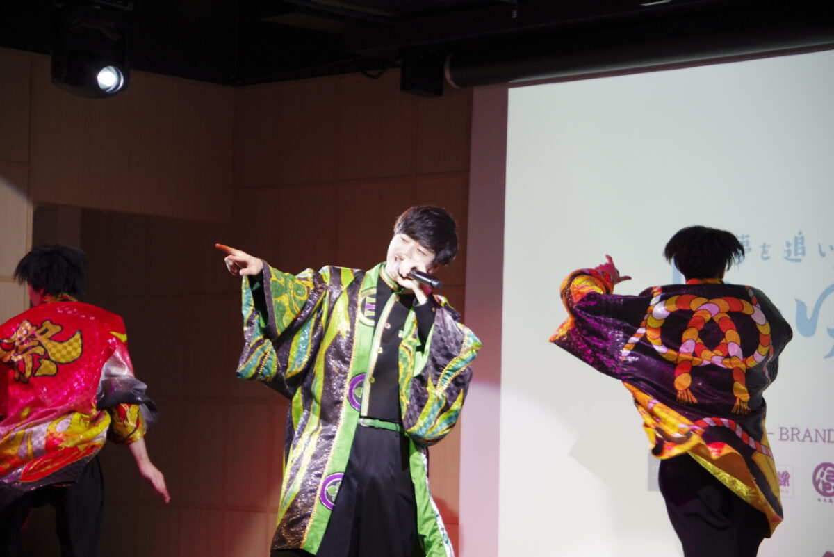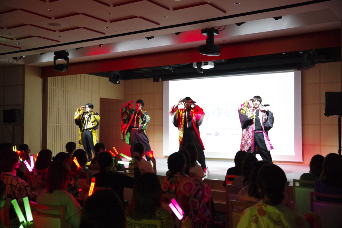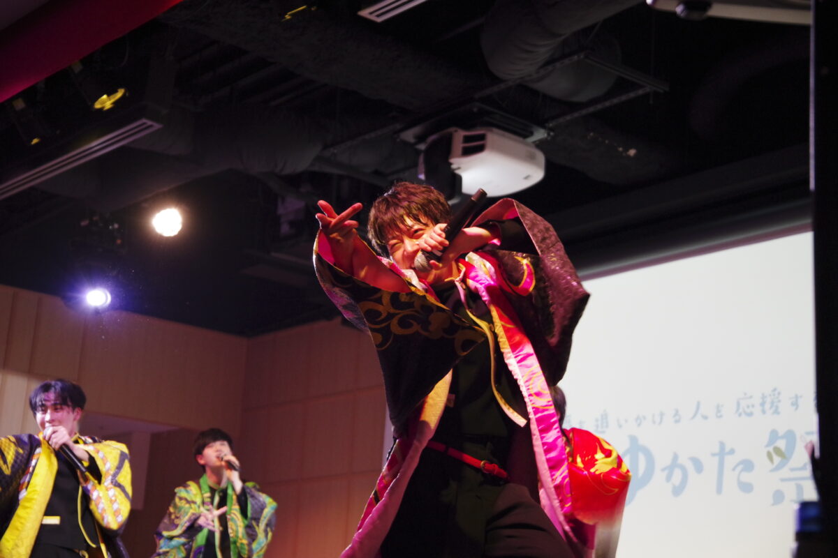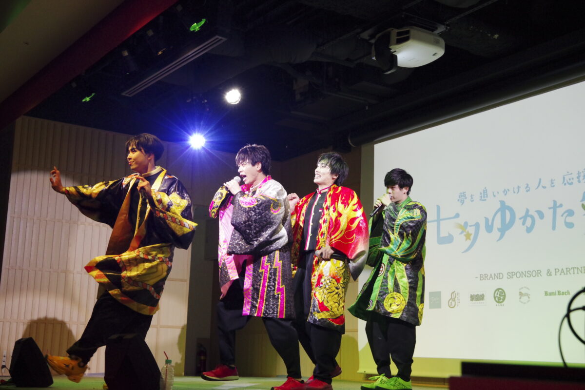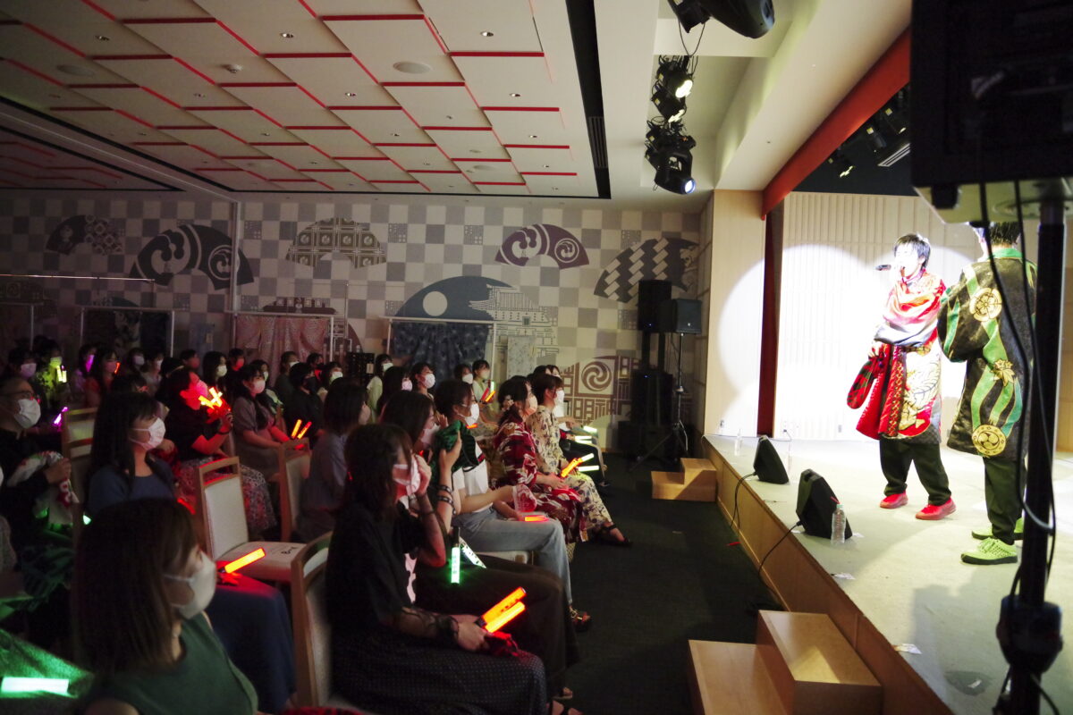 このプログラムは「コロナ禍でも夢を諦めずに追いかける人を応援する」ことをコンセプトに、七夕文化の普及、和装(浴衣)振興を主旨とした「七夕ゆかた祭り2021」の一部。約40分のステージを披露し、約150名の観客は大声が出せない中ペンライトや拍手などで声援を送った。