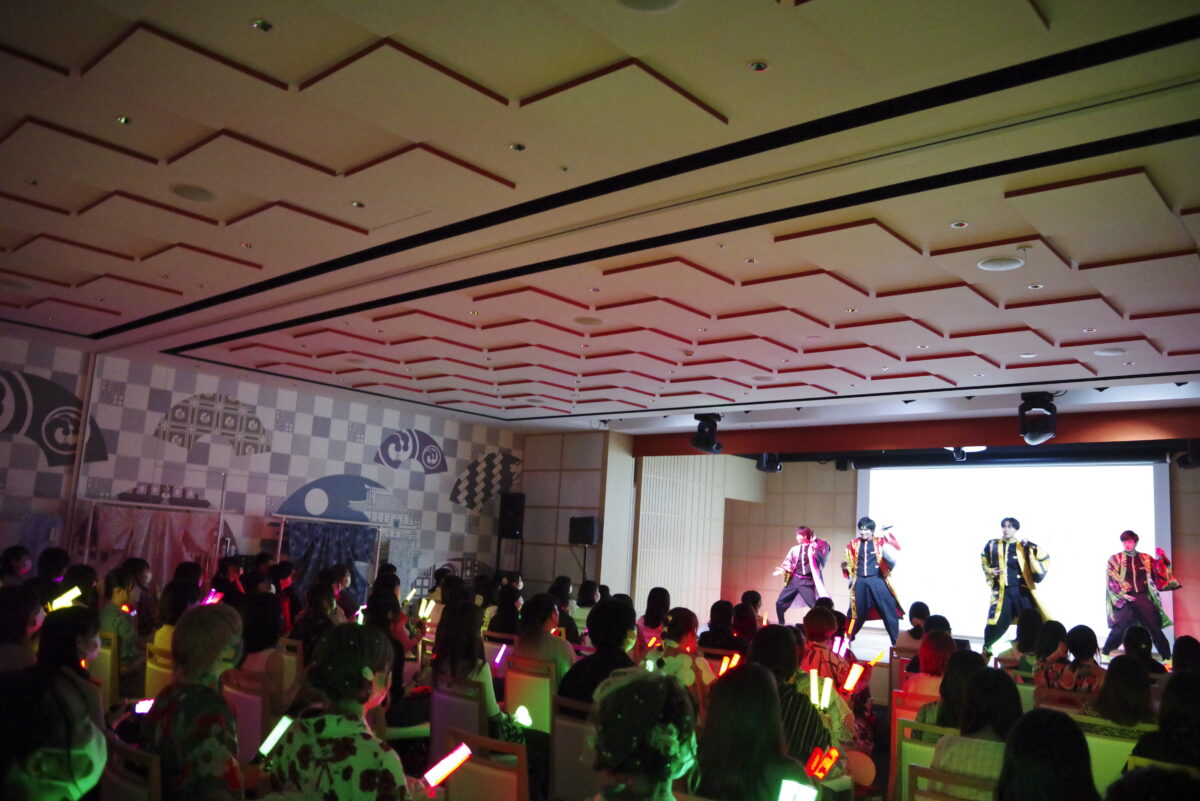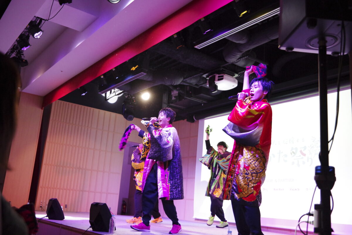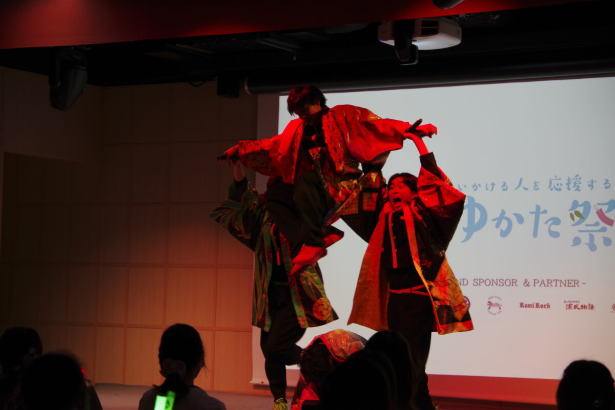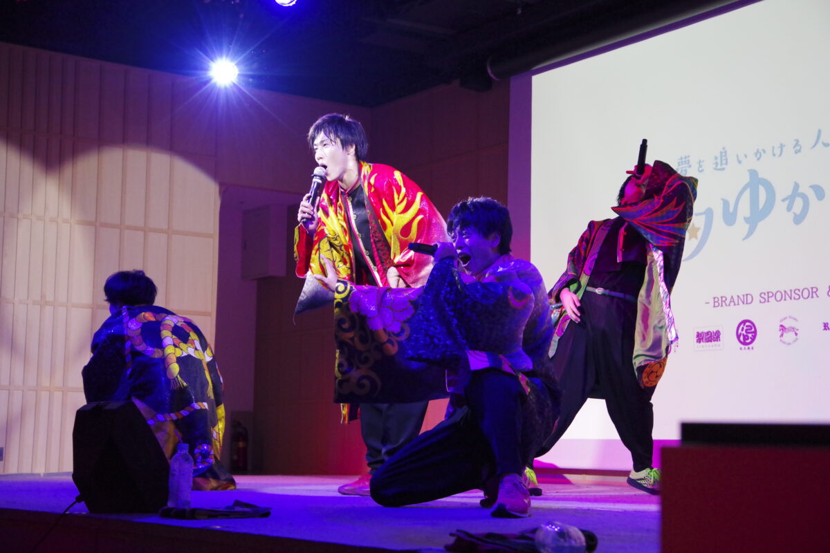 このプログラムは「コロナ禍でも夢を諦めずに追いかける人を応援する」ことをコンセプトに、七夕文化の普及、和装(浴衣)振興を主旨とした「七夕ゆかた祭り2021」の一部。約40分のステージを披露し、約150名の観客は大声が出せない中ペンライトや拍手などで声援を送った。