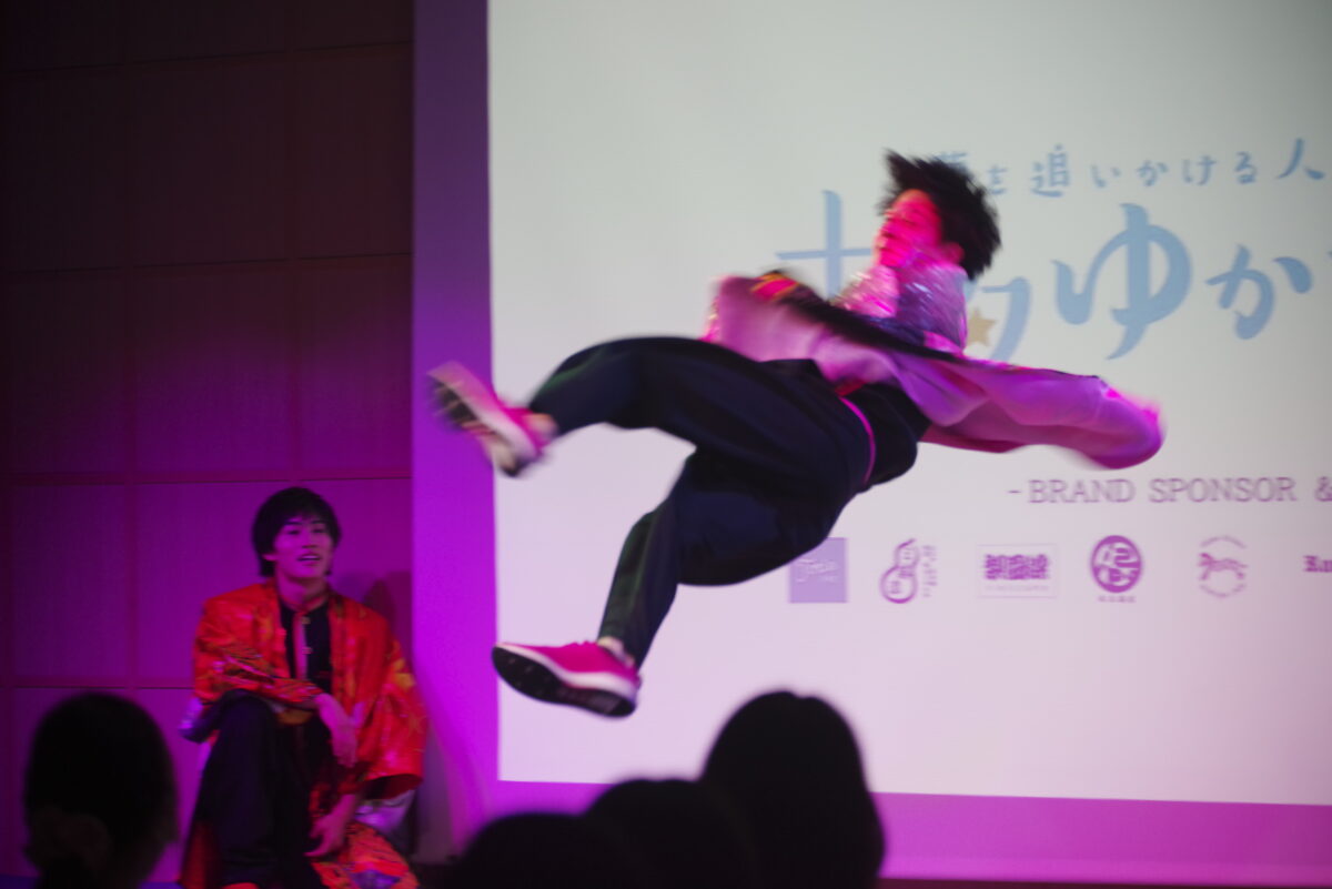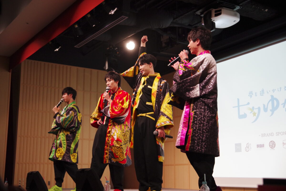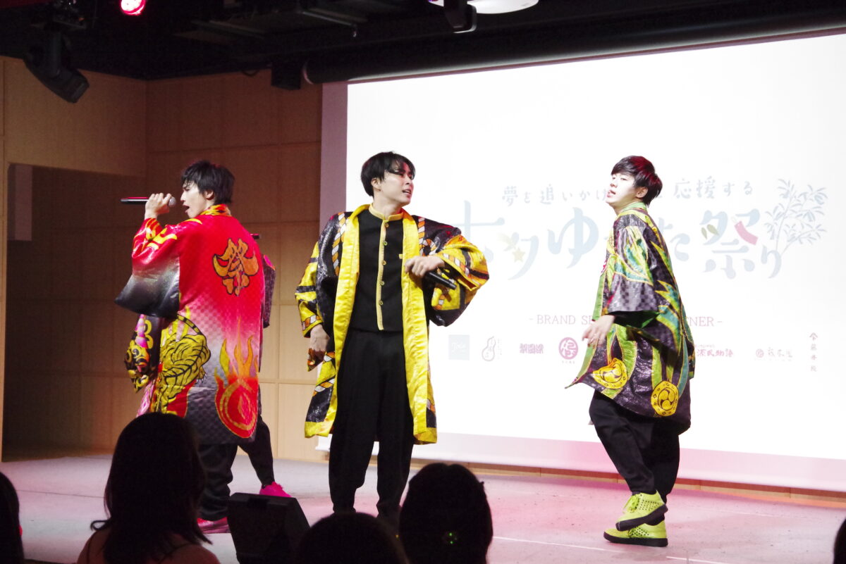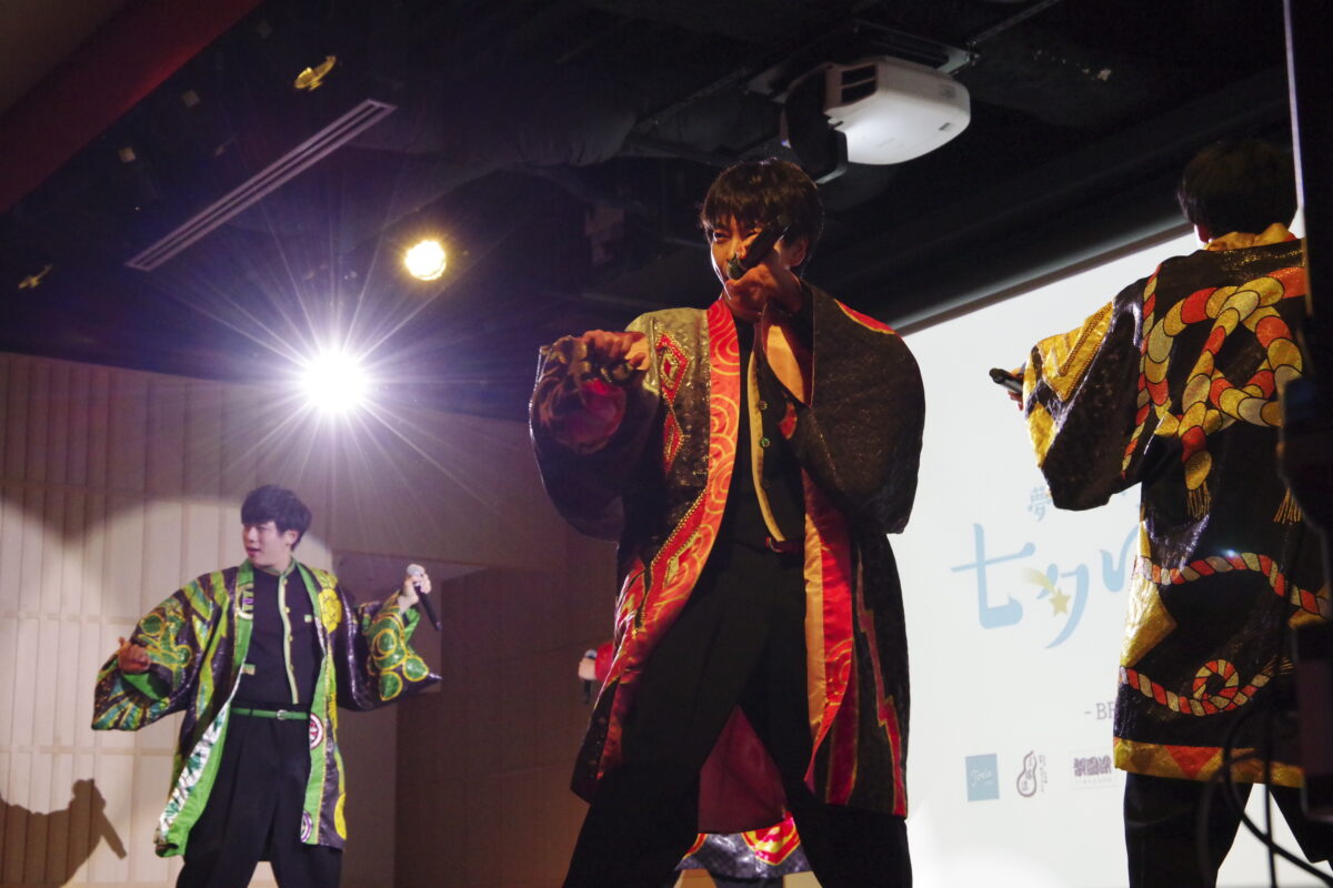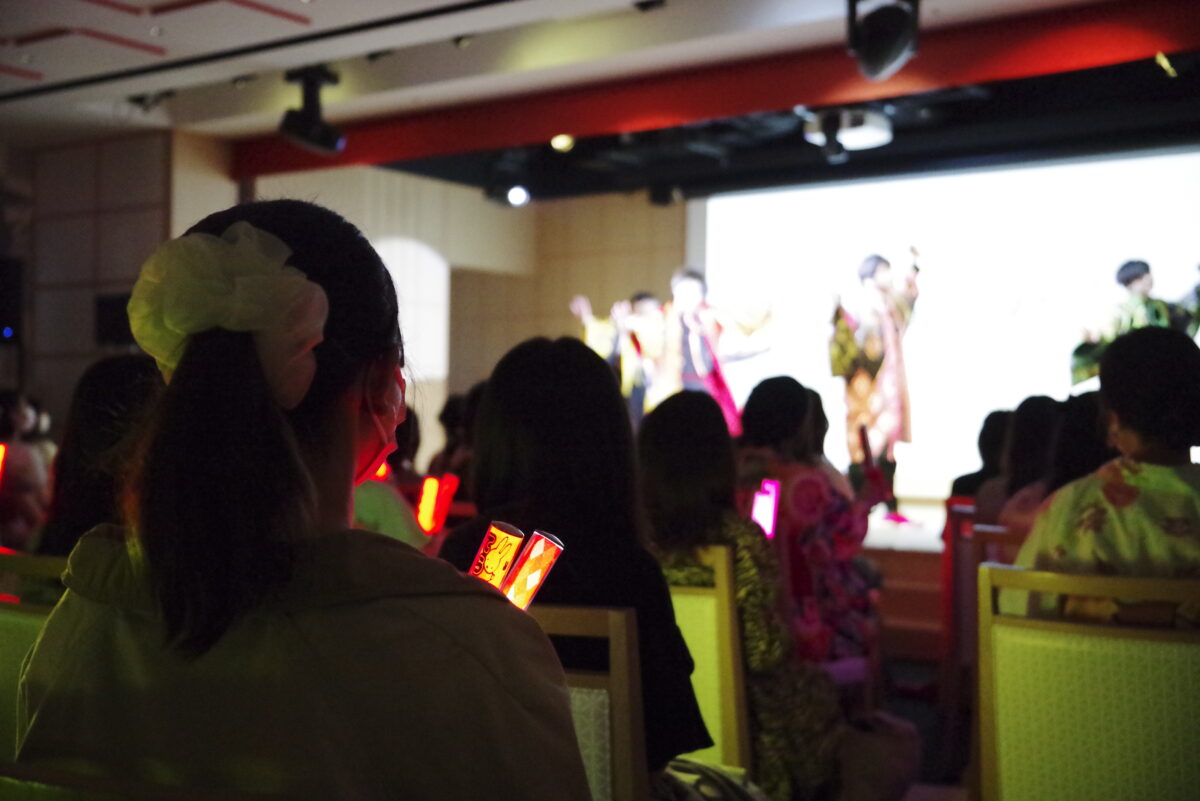 このプログラムは「コロナ禍でも夢を諦めずに追いかける人を応援する」ことをコンセプトに、七夕文化の普及、和装(浴衣)振興を主旨とした「七夕ゆかた祭り2021」の一部。約40分のステージを披露し、約150名の観客は大声が出せない中ペンライトや拍手などで声援を送った。