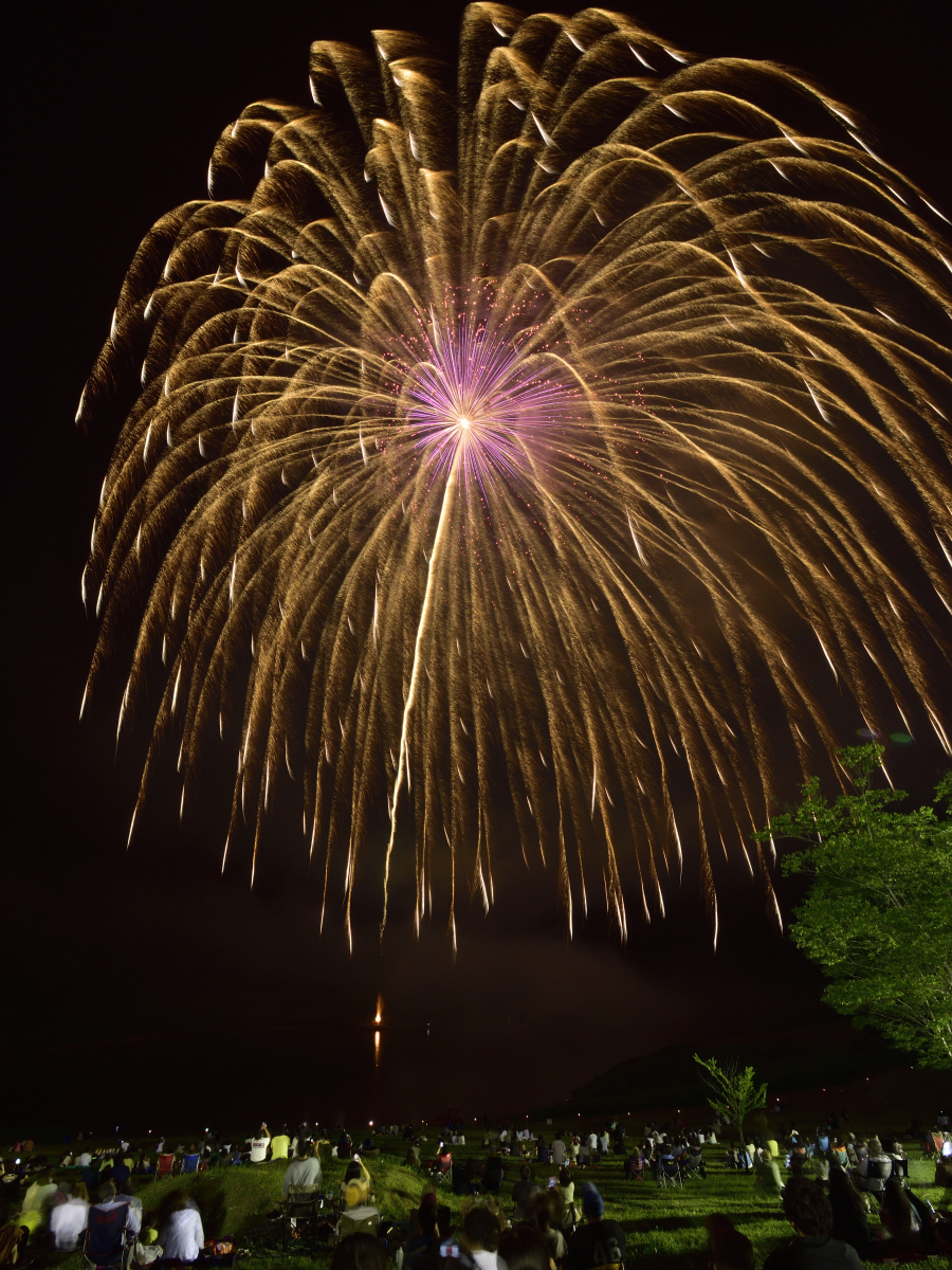 他だと、水中花火と空中花火は別々に打ち上げたりしますが、田瀬湖ではリアルに同時打ち!
