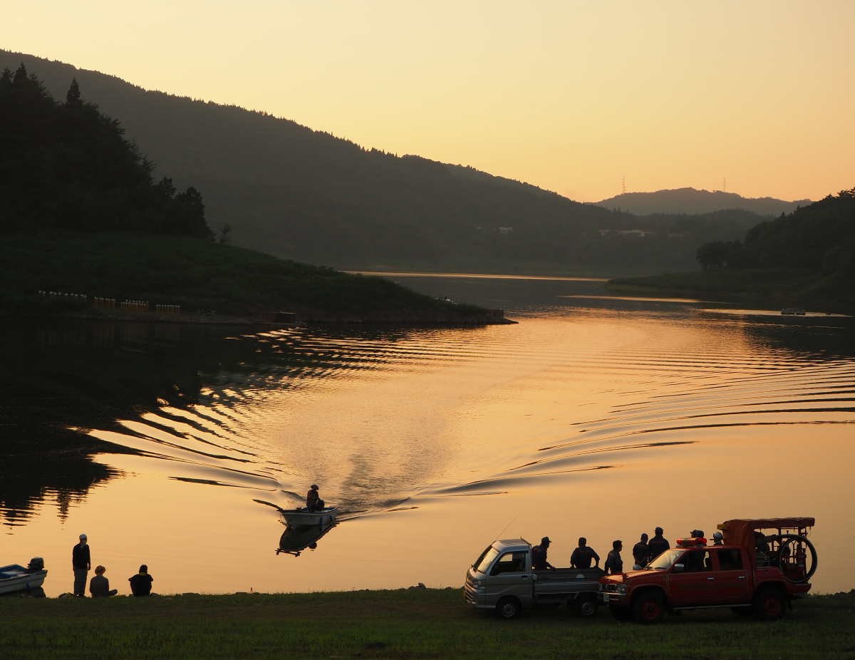 花火前には、夕焼けが映える美しい湖面を撮影する事が出来ます!ボートの波紋が模様を描くシーンが狙い目です!