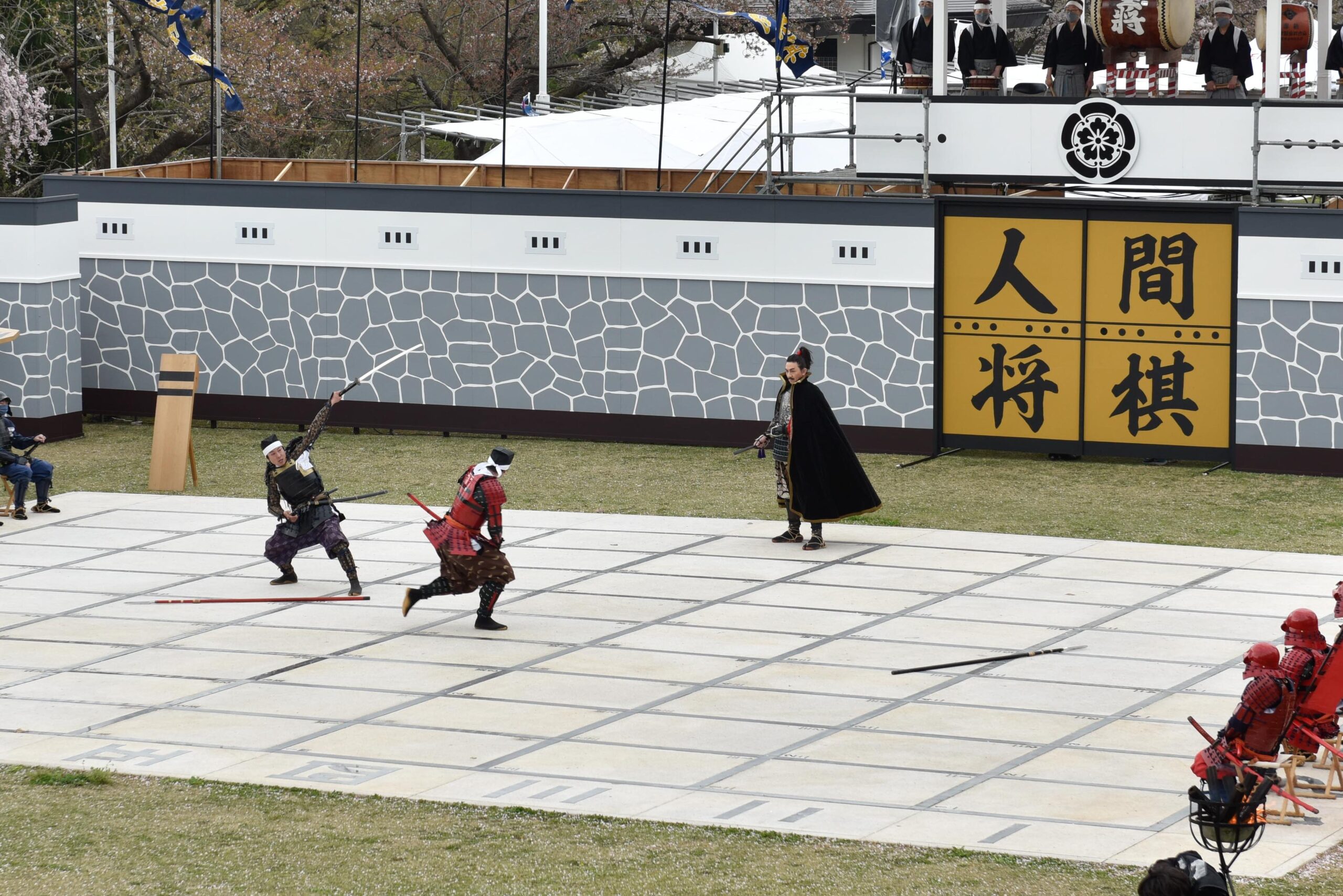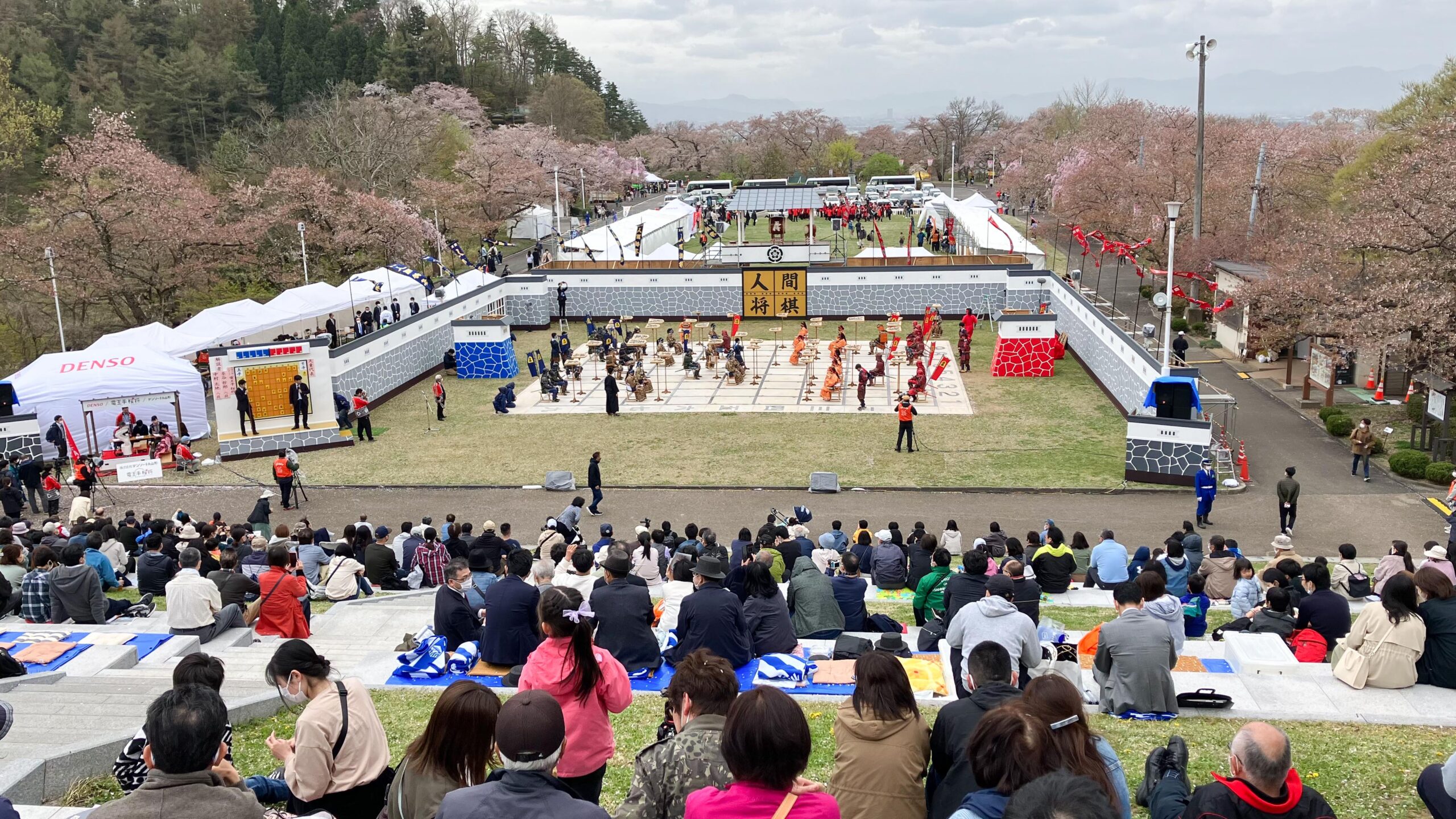 そのような中、山形県天童市の「人間将棋」は、昭和31年から行われている伝統行事です。約2,000本の桜が咲く舞鶴山を舞台に、甲冑や着物姿に身を包んだ武者や腰元たちが、将棋の駒となり対局が行われます。