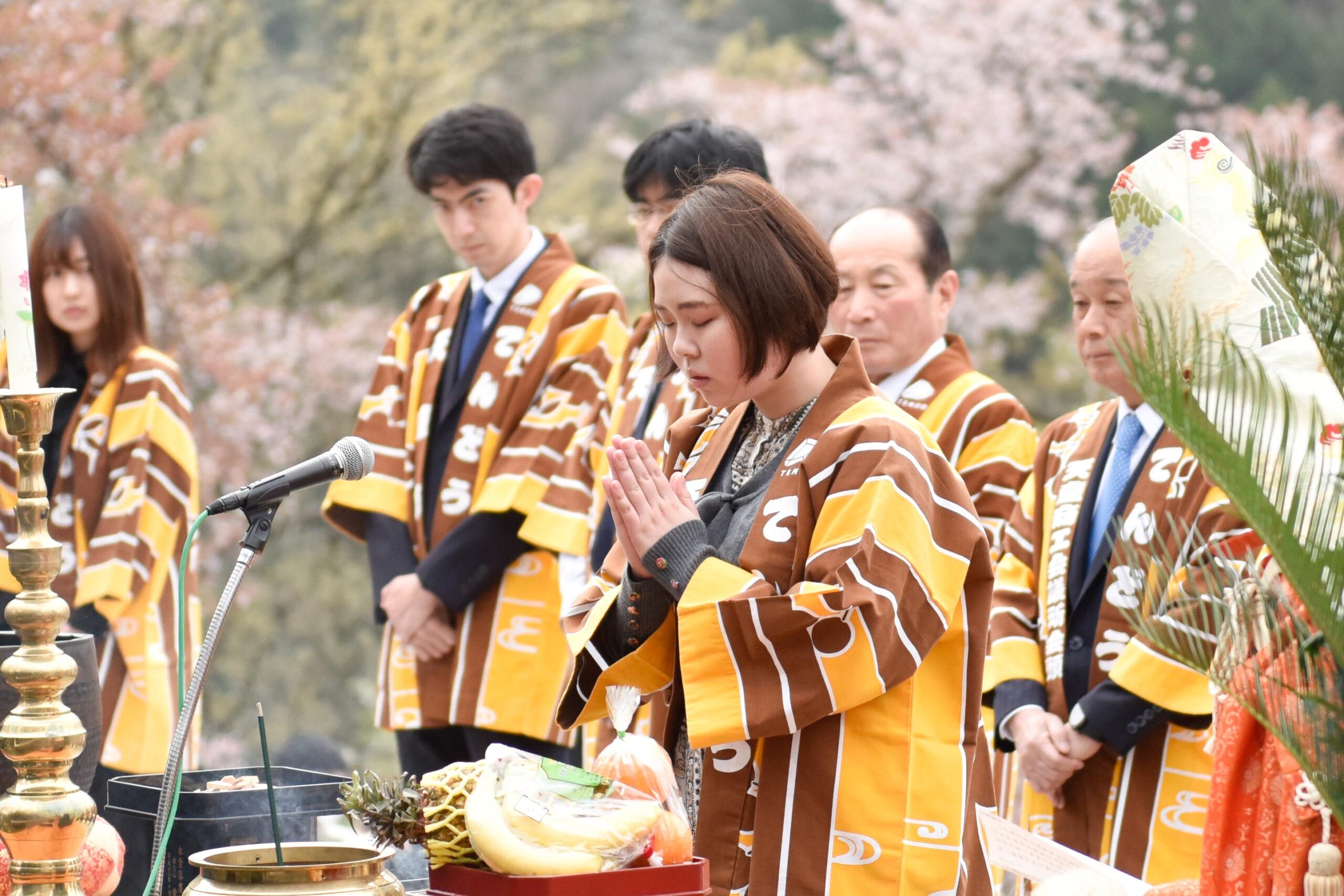 今回のメインイベント(人間将棋)の対局者である、加藤桃子さんも祈りを捧げています。