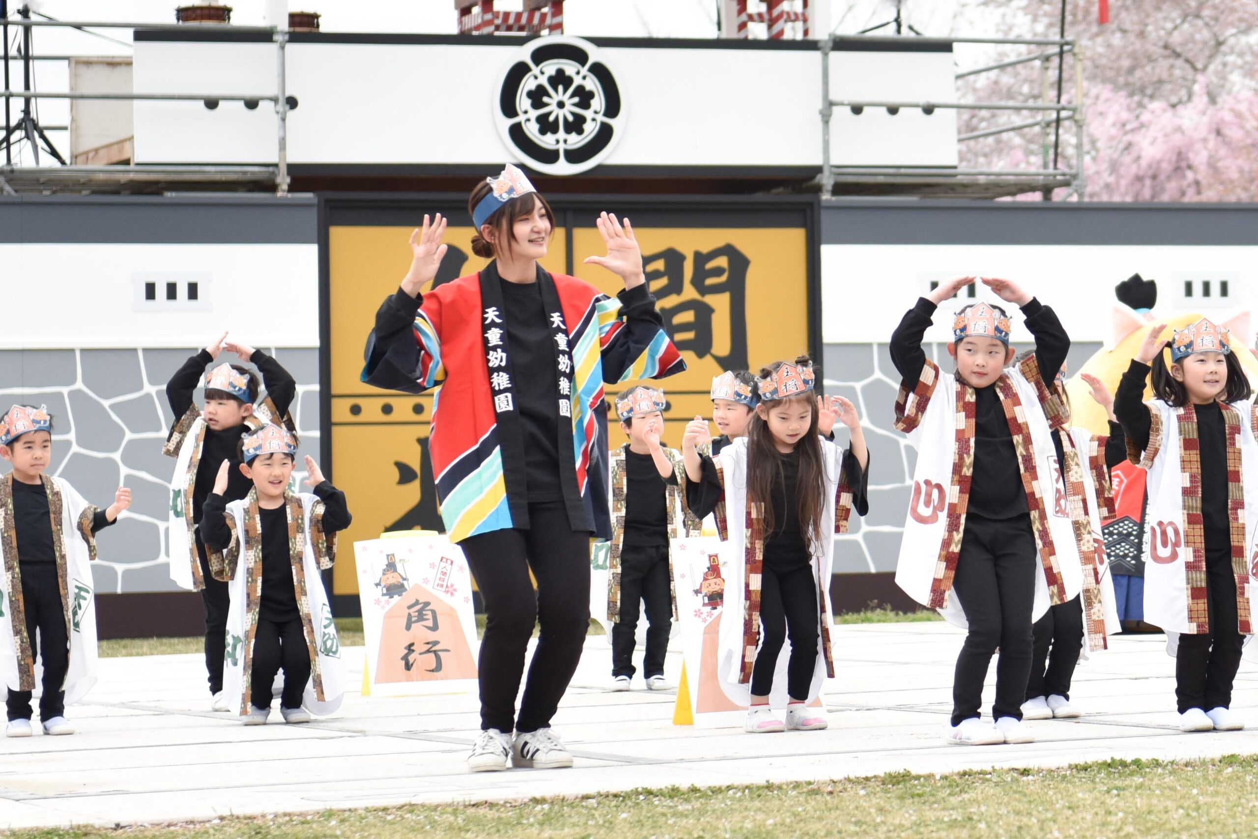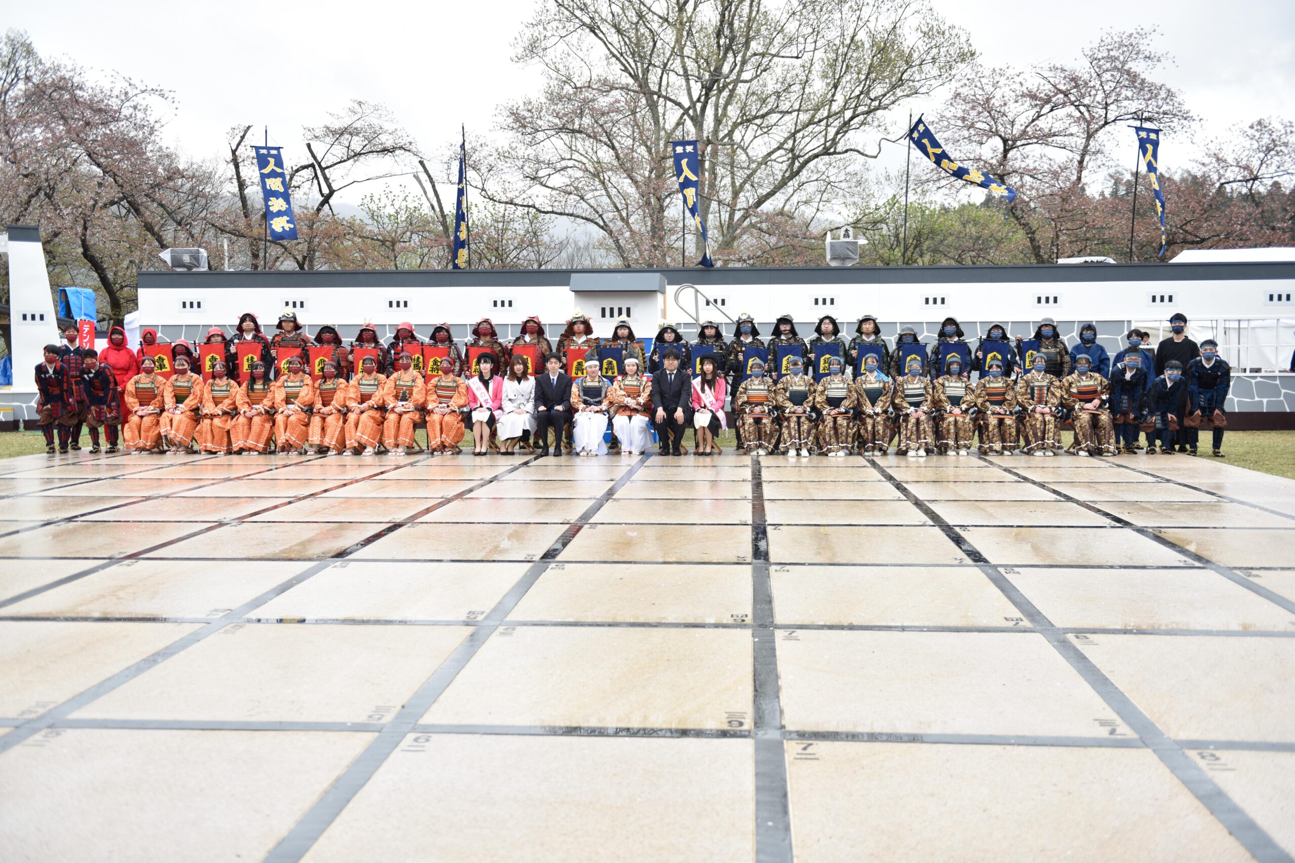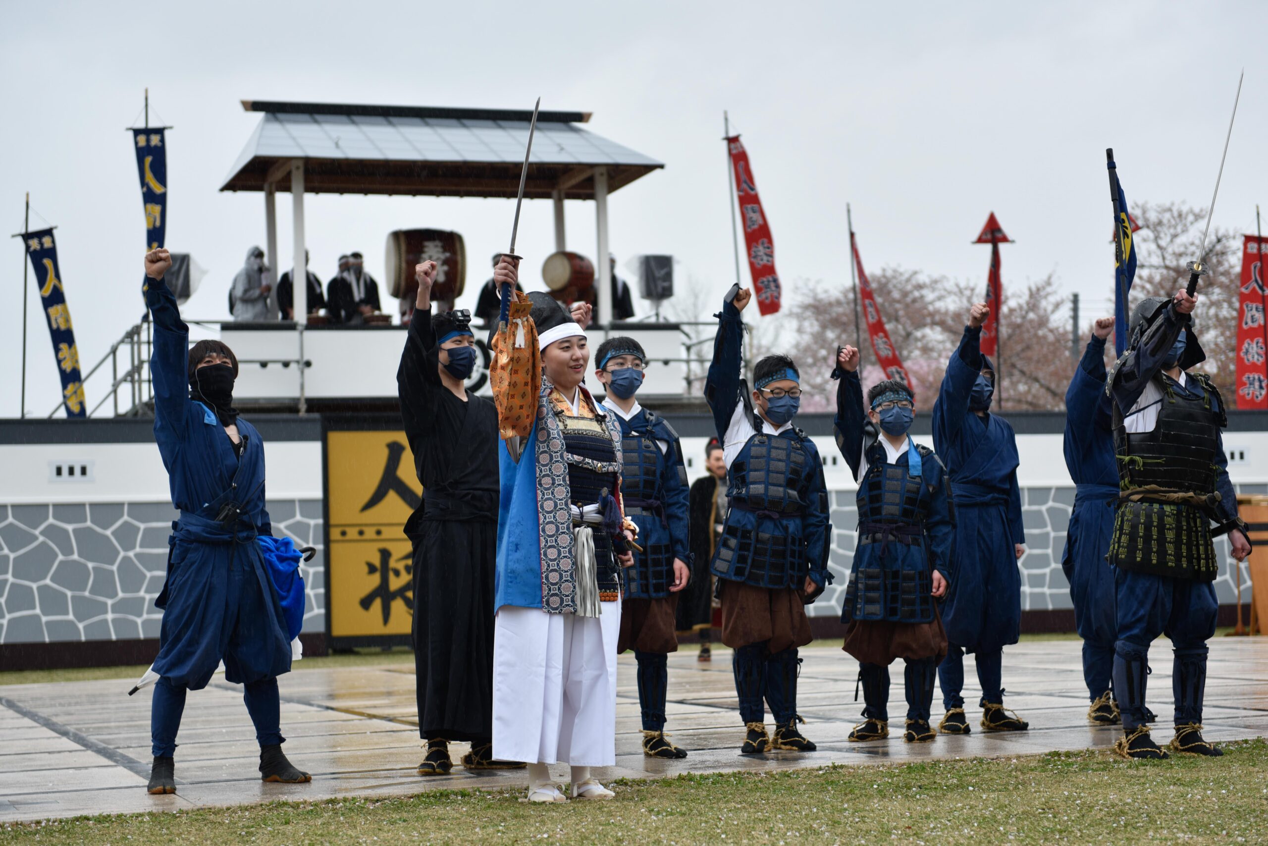 天童高等学校と創学館高等学校の生徒が、駒武者となって姿を現しました。