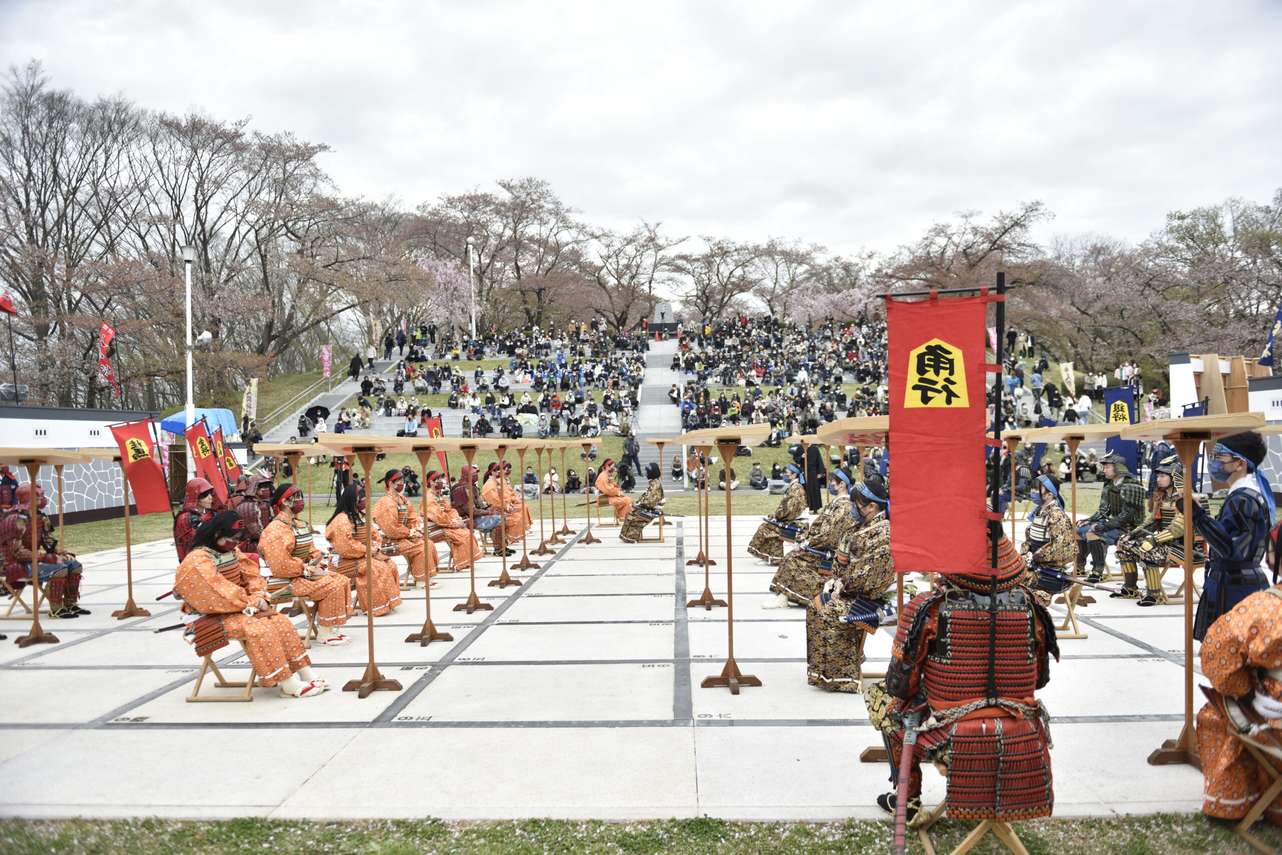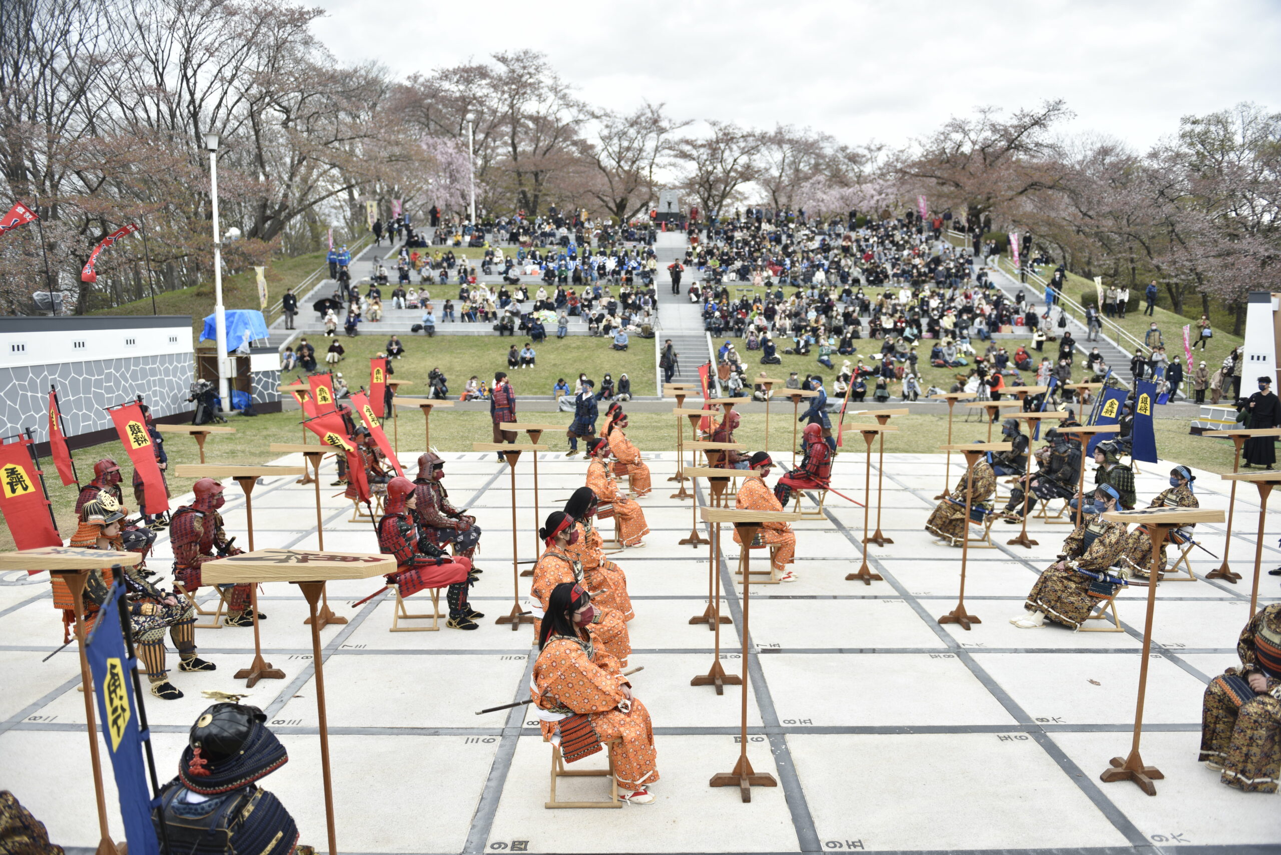 そのような中、山形県天童市の「人間将棋」は、昭和31年から行われている伝統行事です。約2,000本の桜が咲く舞鶴山を舞台に、甲冑や着物姿に身を包んだ武者や腰元たちが、将棋の駒となり対局が行われます。
