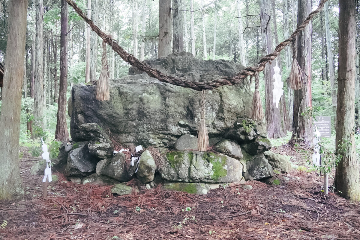 神社本殿の背後にはいかにも霊験あらたかそうな巨石も。
